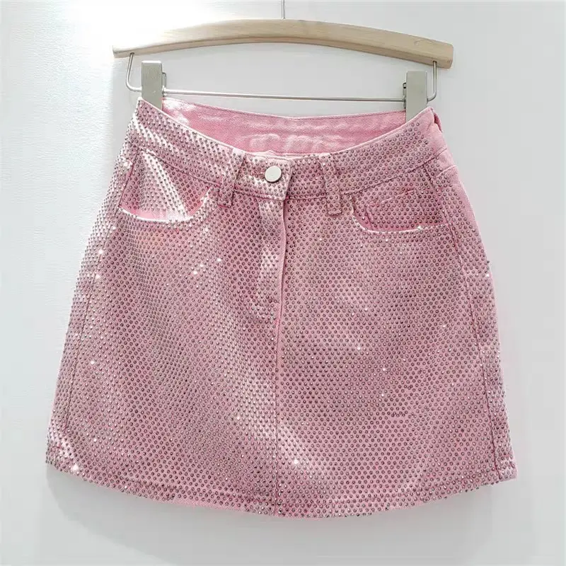 This stylish women's skirt combines trendy elements and quality materials, crafted from durable denim with glittery embellishments. Perfect for parties or casual outings, featuring button closures and pockets for convenience. Available in various sizes to offer a comfortable fit for every occasion. Durable material: made of high-quality denim Comfy fit: designed for comfort while maintaining style Quality material: made from durable denim fabric Versatile design: pairs well with various tops Unique design: features embellishments for a stylish look trendy leisurewear embellished skirts event wear stylish denim sparkly summer apparel casual summer skirt denim sparkly skirt fashion embroidery sequin short denskirt im sparkling skirt styles denim mini skirt casual sparkling skirt for women cute party outfit everyday skirt pink denim Skirt trendy summer clothing cute summer fashion sparkly apparel occasion wear sparkly party wear fashionable skirts short skirts