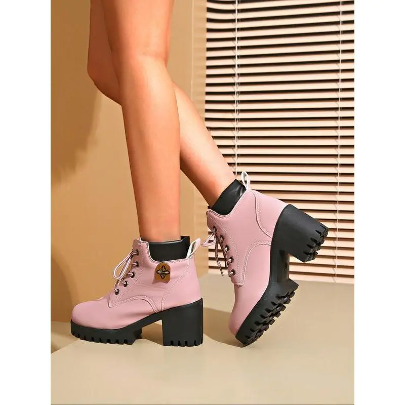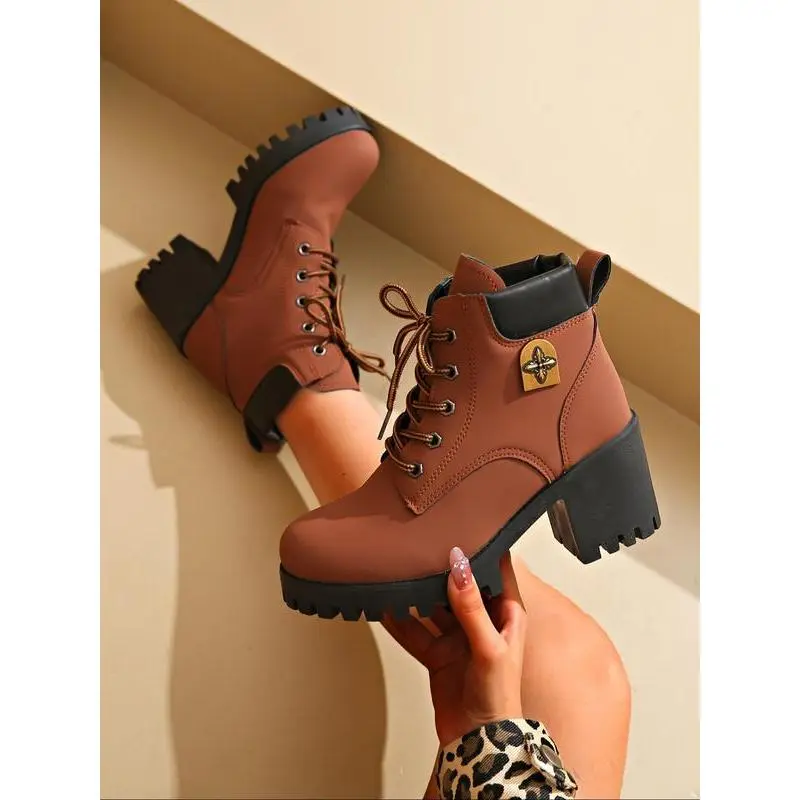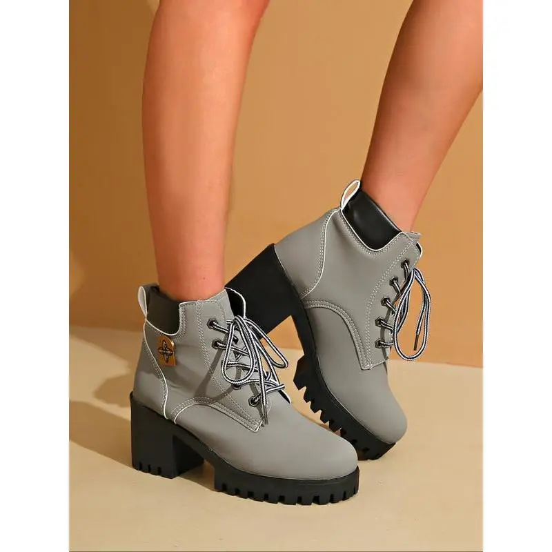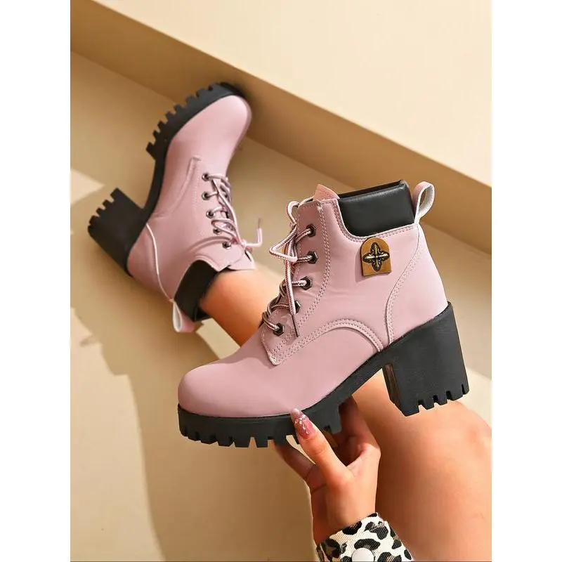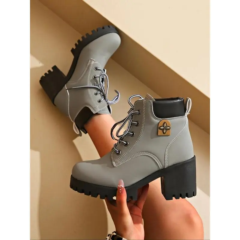 Women's Combat Boots with Laces, Stylish Preppy Letter Decor, Trendy Daily Wear Shoes, Fashionable College Style Footwear