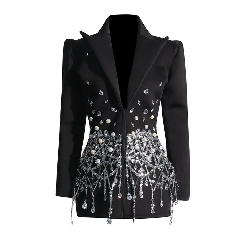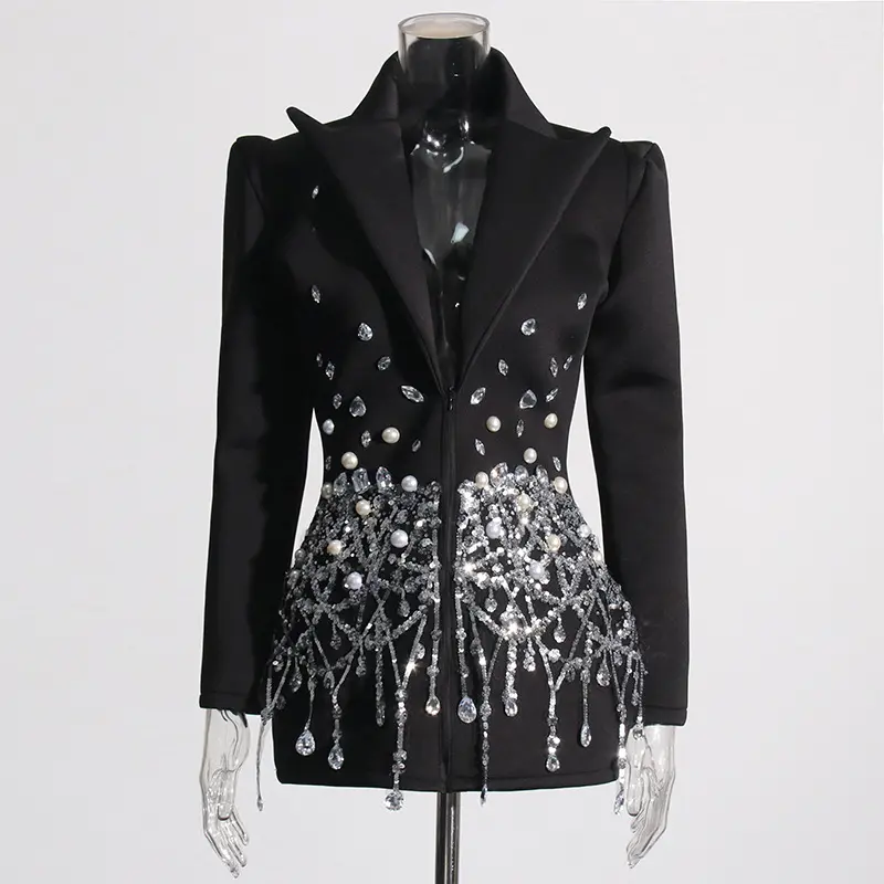 Sexy Socialite Style 2025 New Turn-Down Collar Long Sleeve Butterfly Sequin Full Diamond Ultra-Short Blazer Dress for Women