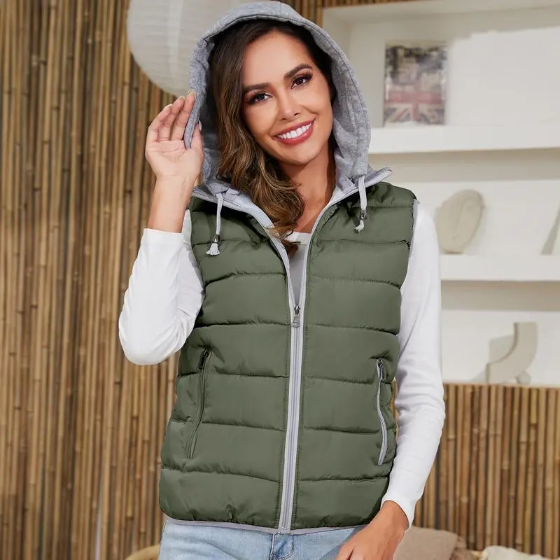 SHEEN Women's Puffer Vest Zip Up Quilted Padded Winter Sleeveless Hooded Vest Gilet Warm Jacket Outerwear Vest