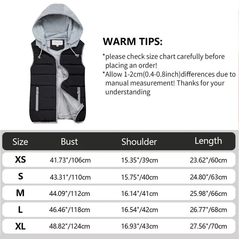 SHEEN Women's Puffer Vest: A Versatile Winter Essential ?? Material & Comfort ??- High-Quality Fabric: Crafted from premium fabric, ensuring warmth and comfort.- Cotton Fill: Filled with cotton, providing effective insulation against cold winds.- Seasonal Wear: Suitable for spring, autumn, and winter. ?? Features ??- Removable Hood: Equipped with an adjustable drawstring hood for added warmth.- Zipper Side Pockets: Two large zipper side pockets for keeping your hands warm. ?? Matching Options ??- Cropped Puffer Vest: Fits nicely over long-sleeve shirts, sweaters, hoodies, and dresses for a casual look.- Trendy Style: A versatile vest jacket coat that easily matches with all your outfits. ?? Occasions ??- Casual Life: Perfect for everyday wear.- School Life: Ideal for school activities.- Office: Suitable for office wear.- Lounge: Perfect for lounging.- Outdoor Activities: Great for hiking, biking, climbing, and shopping. ?? Size Guide ??- U.S. Size Chart: Available in sizes XS to XXL. - XS: US(2) - S: US(4-6) - M: US(8-10) - L: US(12-14) - XL: US(16-18) - XXL: US(20-22) Conclusion: The SHEEN Women's Puffer Vest is a versatile and warm winter essential, perfect for various occasions and easy to match with your outfits. ??