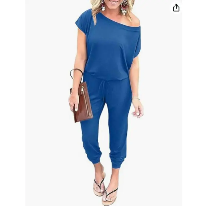 Summer Outfit Women's Jumpsuit Plus size S-XXXL Fake Drawstring Off-Shoulder Overalls Elastic Waist Stretchy Loose Minimalist Comfy Clothes Casual Outdoor Lightweight Romper