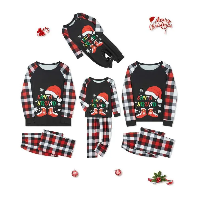 christmas pajamas for family long sleeve santa hat boots print tops + plaid pants set winter sleepwear -- Quality fabric, they??ll help you stay warm on chilly nights. -- Hand/Machine wash in cold separately. Hang dry. -- Clothes are SOLD SEPARATELY. If you need a set for whole family, you must add a women/men/kid /baby size you need into your shopping cart. Material: 95%Polyester, 5%Spandex 1 X Tops 1 X Pants 1 X Baby Romper If the product has any quality problems, please feel free to contact us, we will help you solve the problem as quickly as possible.