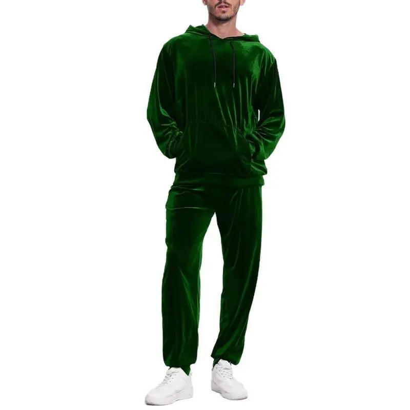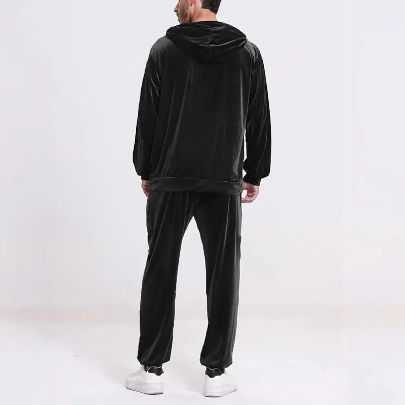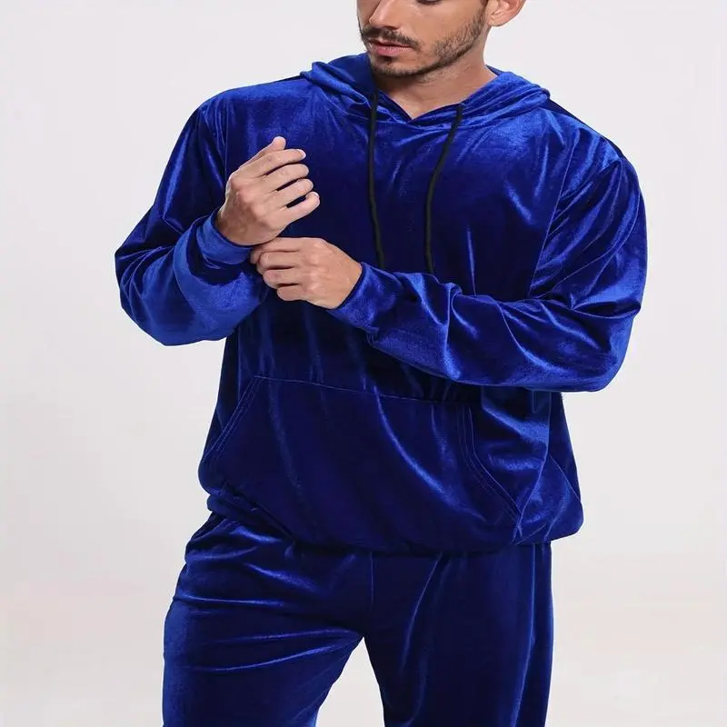 Men's Two-piece Solid Color Velvet Long Sleeve Hoodie And Drawstring Trousers Casual Set Clothes Fabric men's 2 piece set Men's Digital Print Hoodie Set