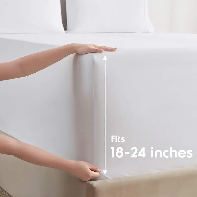 MicrofiberKing Size - Includes extra deep pocket fitted sheet, flat sheet, and 4 pillow cases.Deep-pocket fitted sheet measures 78 inches x 80 inches and fits mattresses 18-24 inches deep.Flat sheet measures 105 inches x 102 inches.Pillow cases measure 20 inches x 40 inches.Extra Deep Pocket Sheets - Deep pocket sheets fit deep pocket 18-inch, 20-inch, 21-inch, 22-inch, and 24-inch mattresses. These are the sheets for extra tall & large mattresses and great for mattresses with a 3-inch or 4-inch topper, double pillow top, topper, or thick mattress pad!Super Sof Premium Microfiber - Hotel-quality bedding woven from the highest-quality microfiber, double-brushed on both sides for softness and.Care and Cleaning: Wrinkle free and fade resistant, our microfiber sheets are and made to last.Our bed sheet & pillowcase sets are machine washable.Choose from our wide selection of colors to your king sheet set.with: We proudly sustainable manufacturing practices with OEKO-Tex Standard certification. Shop queen size sheets with confidence because no matter what, we’ve got you covered.
