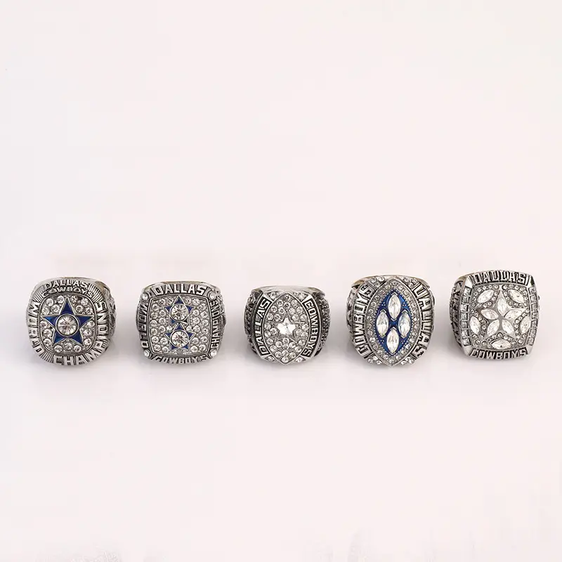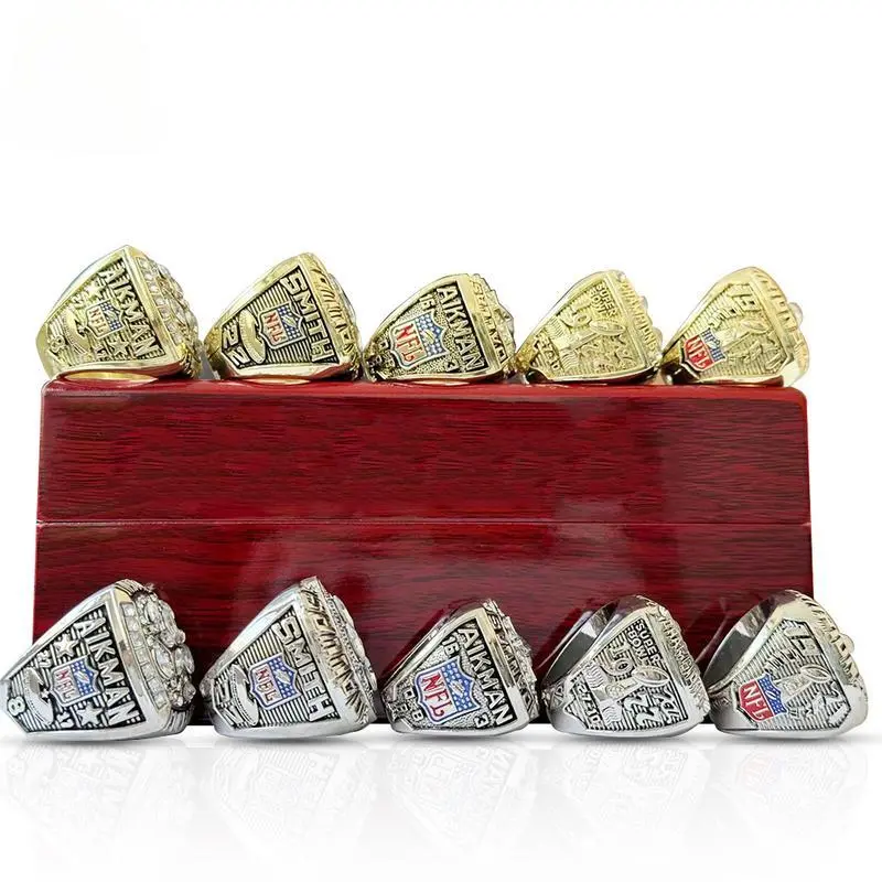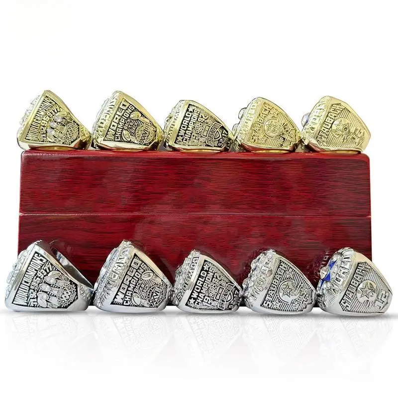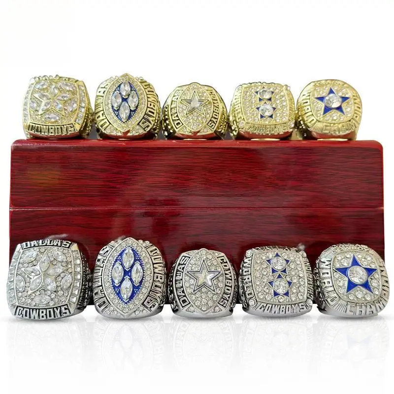 Golden color 5pcs/set dallas football world championship rings set with brown wooden display box for mens gift Jewellery