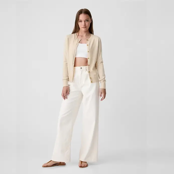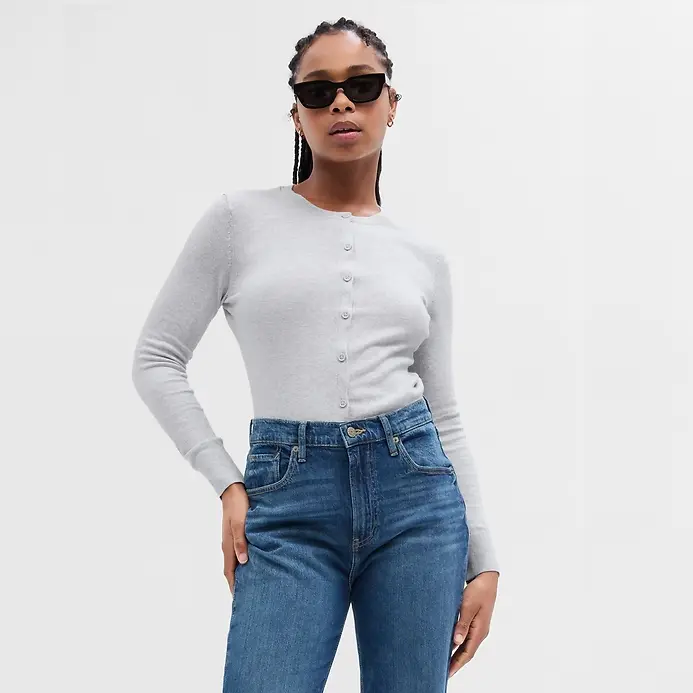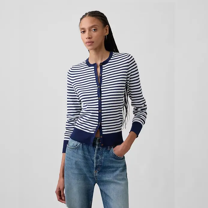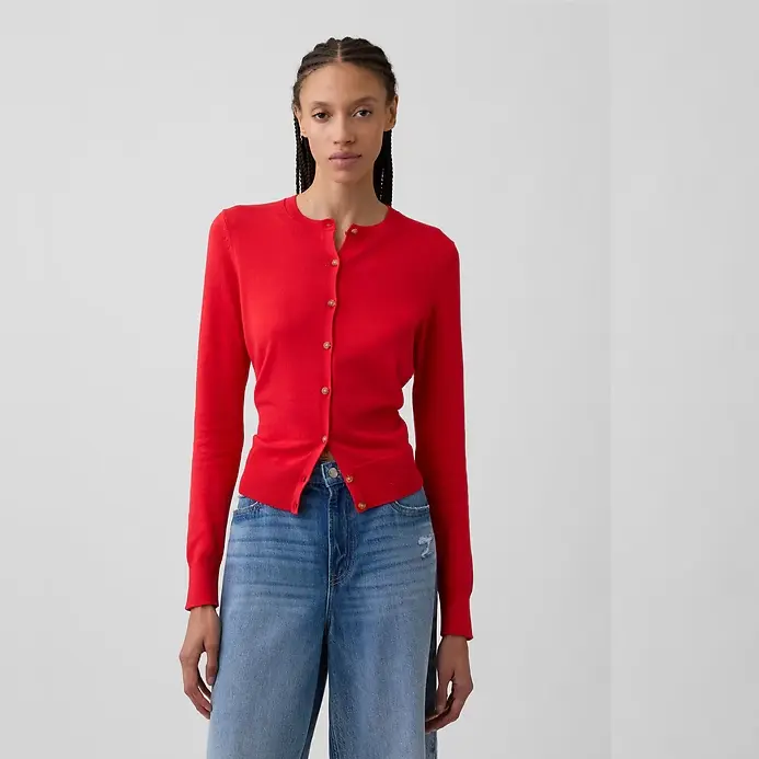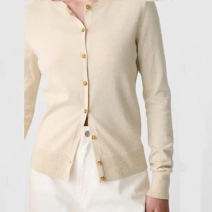 Crewneck Cardigan Soft Cotton Knit Long Sleeves Ribbed Banded Cuffs Ethical Manufacturing for Gender Equity