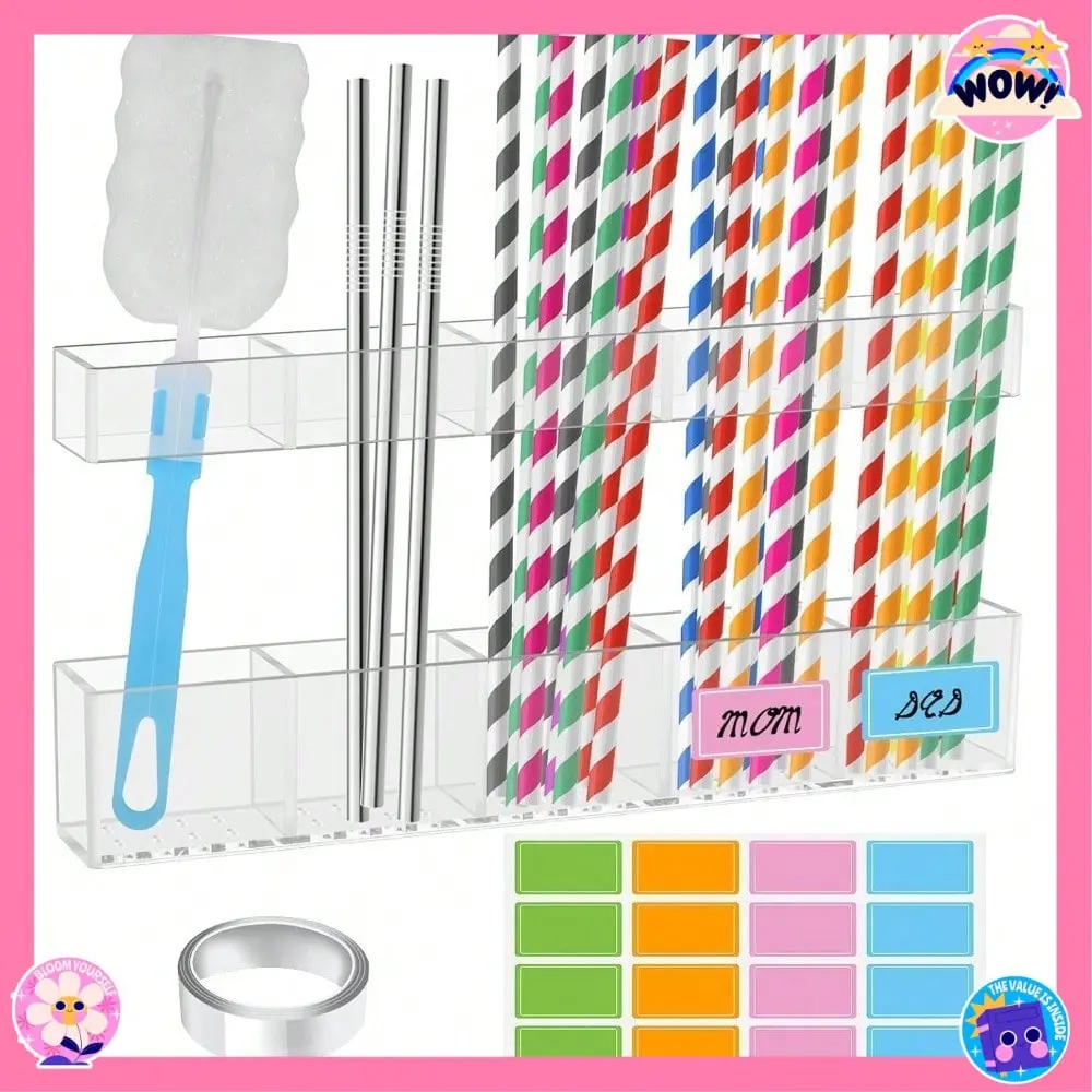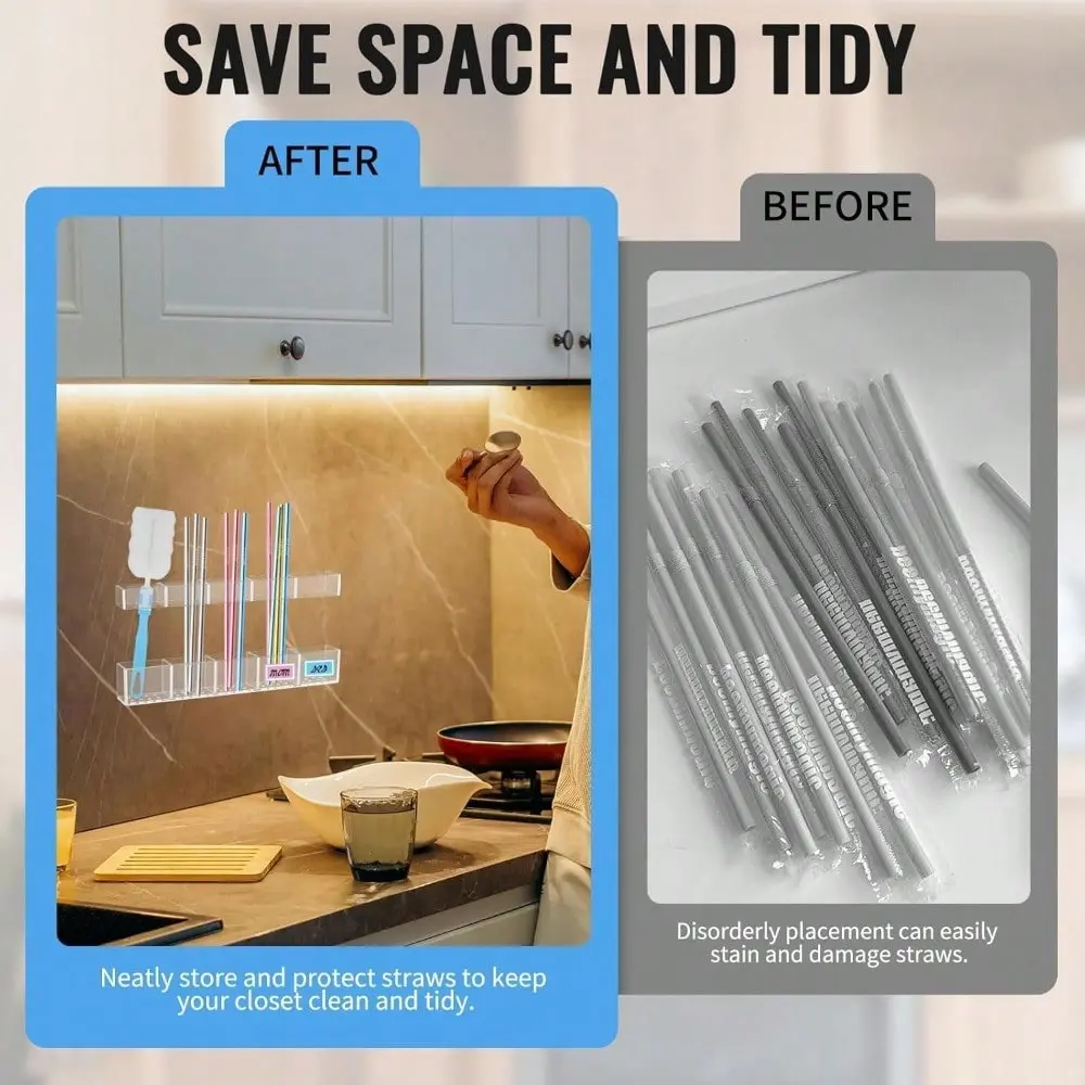 This adjustable straw holder is perfect for your cabinet door. It's a clear acrylic organizer designed for reusable straws and stirrers. The split design fits all lengths, making it versatile. Peel & stick it inside your cabinet for easy storage. It's a space-saving solution for your kitchen organization.