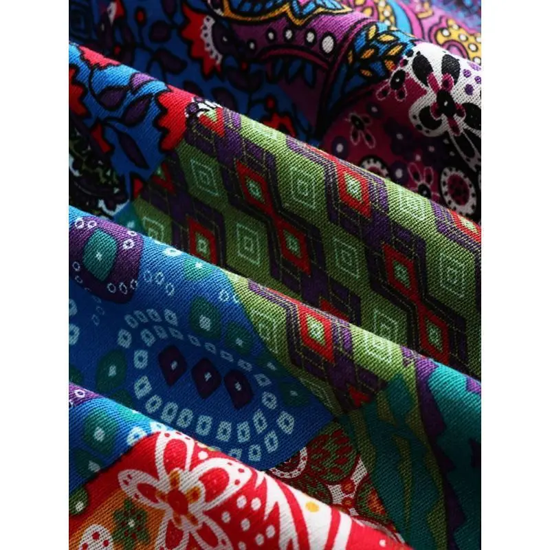 Tanming Women's Patchwork Dual Pocket Jumpsuit Loose Floral Print Bohemian Wide Leg Bib Overall Springfresh