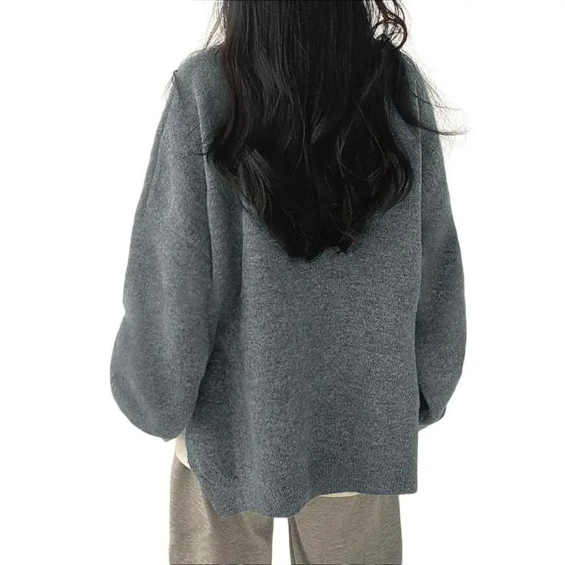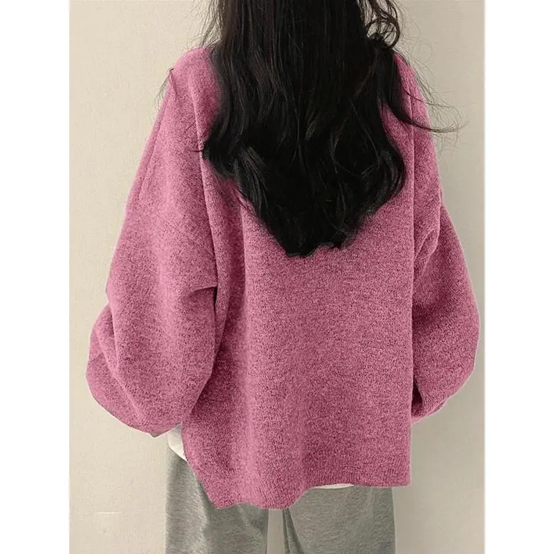 ??Loose-fitting??: This sweater features a loose fit, allowing freedom of movement and a relaxed silhouette for everyday wear. ??Moderate Thickness??: Crafted from moderate thickness fabric, it provides just the right amount of warmth during fall and winter seasons. ??Short Length??: The short clothing length adds a trendy touch, pairing well with high-waisted bottoms for a balanced look. ??Plain Pattern??: The plain pattern offers a sleek and understated aesthetic, making it easy to layer and coordinate with various outfits. ??Sweater Fabric Category??: Made with typical sweater fabric, it delivers a cozy feel suitable for colder weather conditions.