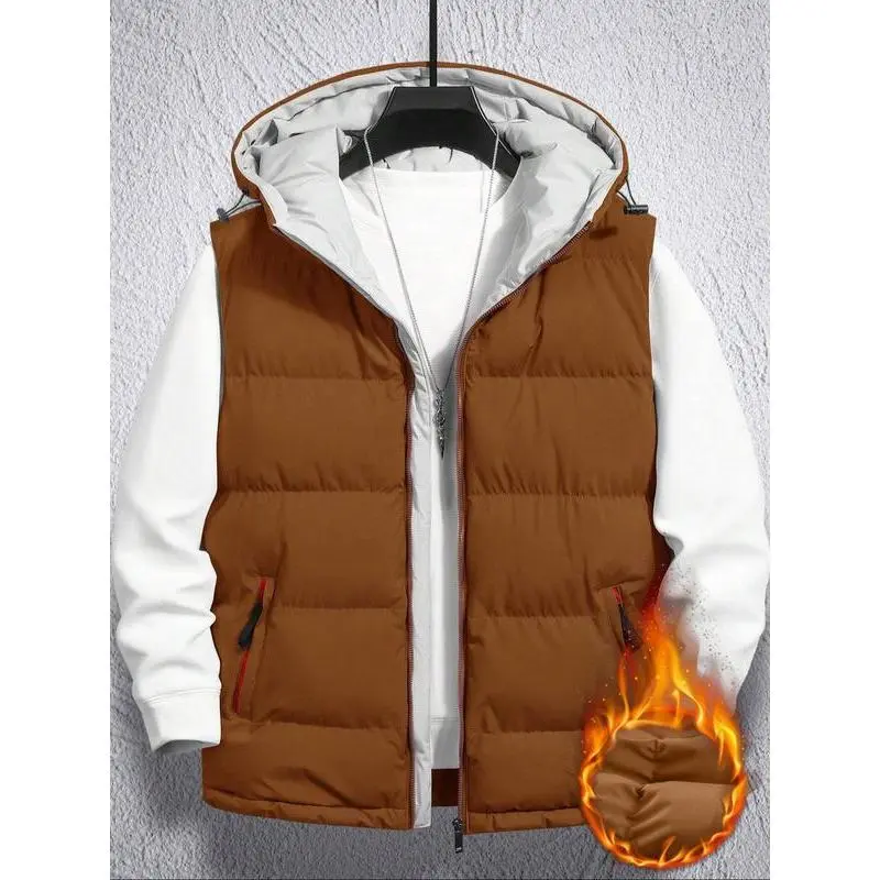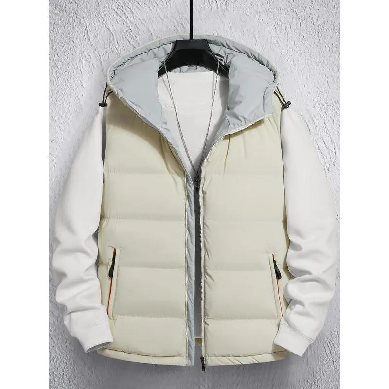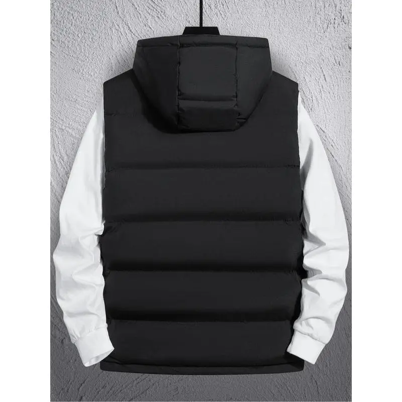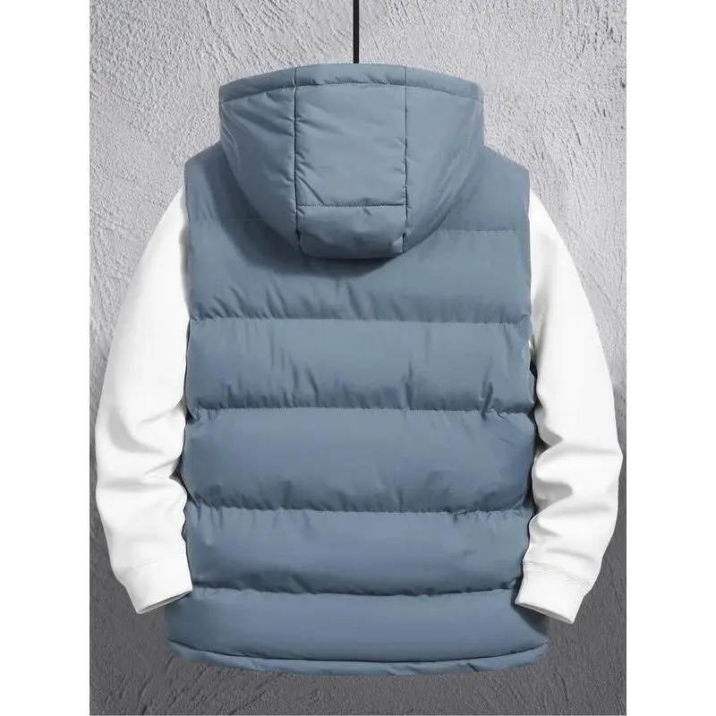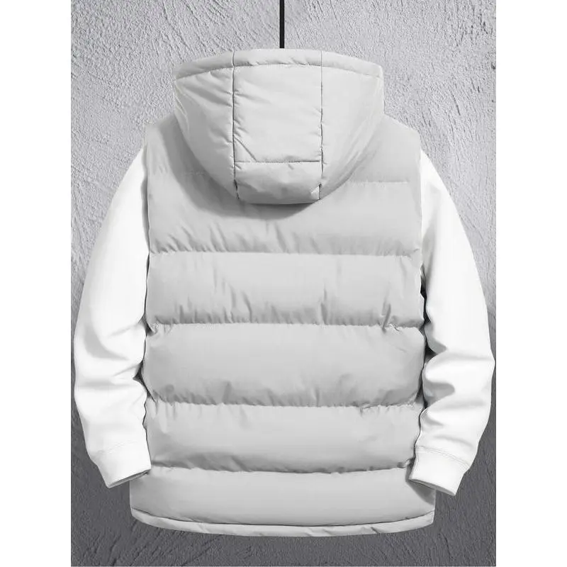 Men's Casual Hooded Vest Jacket, Zipper Sleeve Down Coat, Winter Outdoor Leisure Bubble Vest, Perfect Gift for Friends & Family