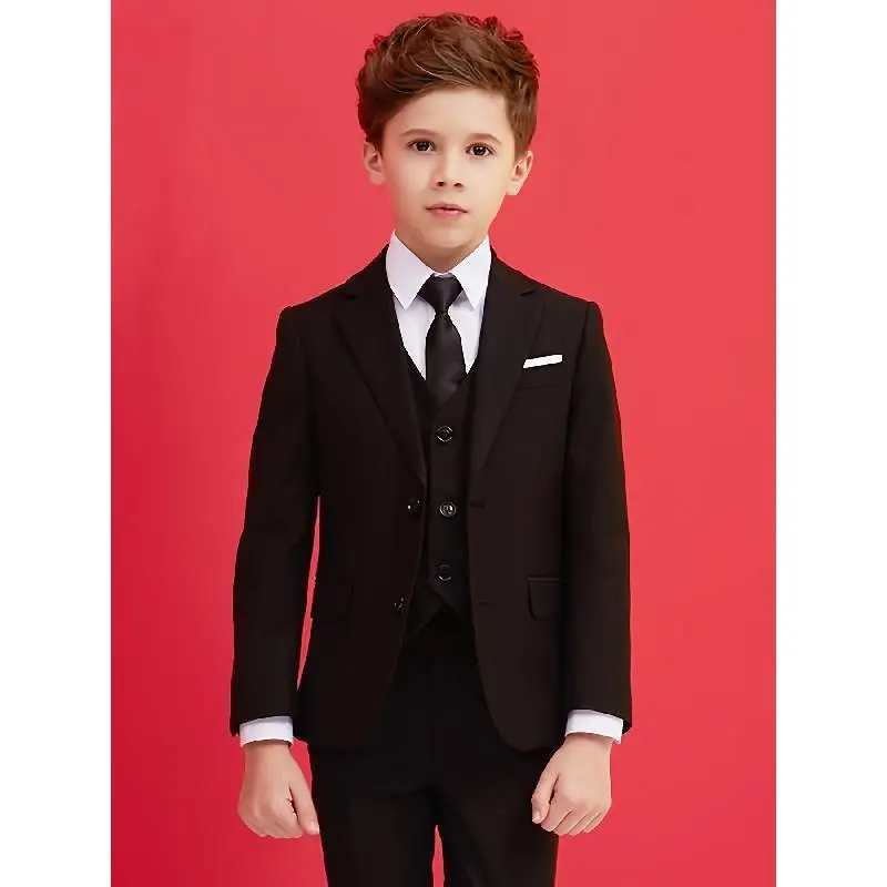 Jacket+Vest+Pants+Tie+shirt-5pcs Set Formal Dress Piano Performance Graduation Ceremony Suit Wedding Attire