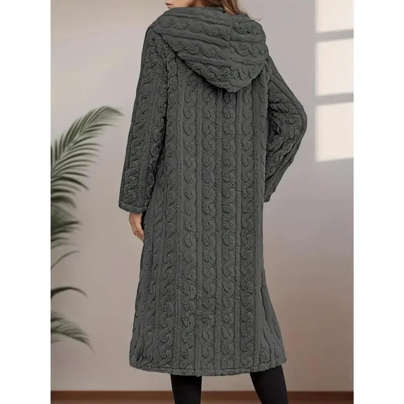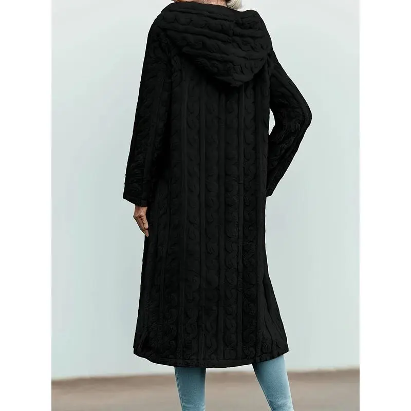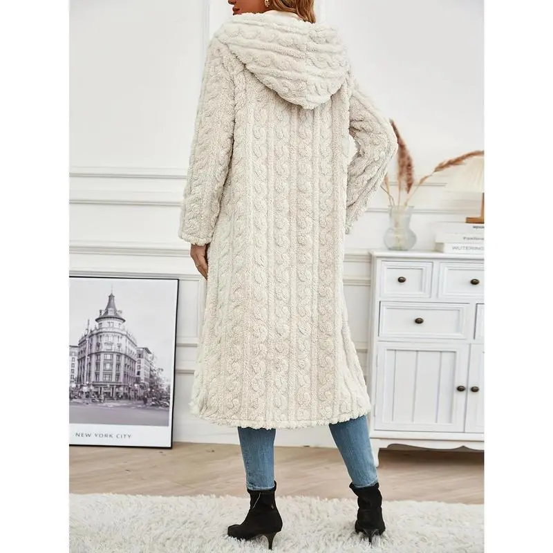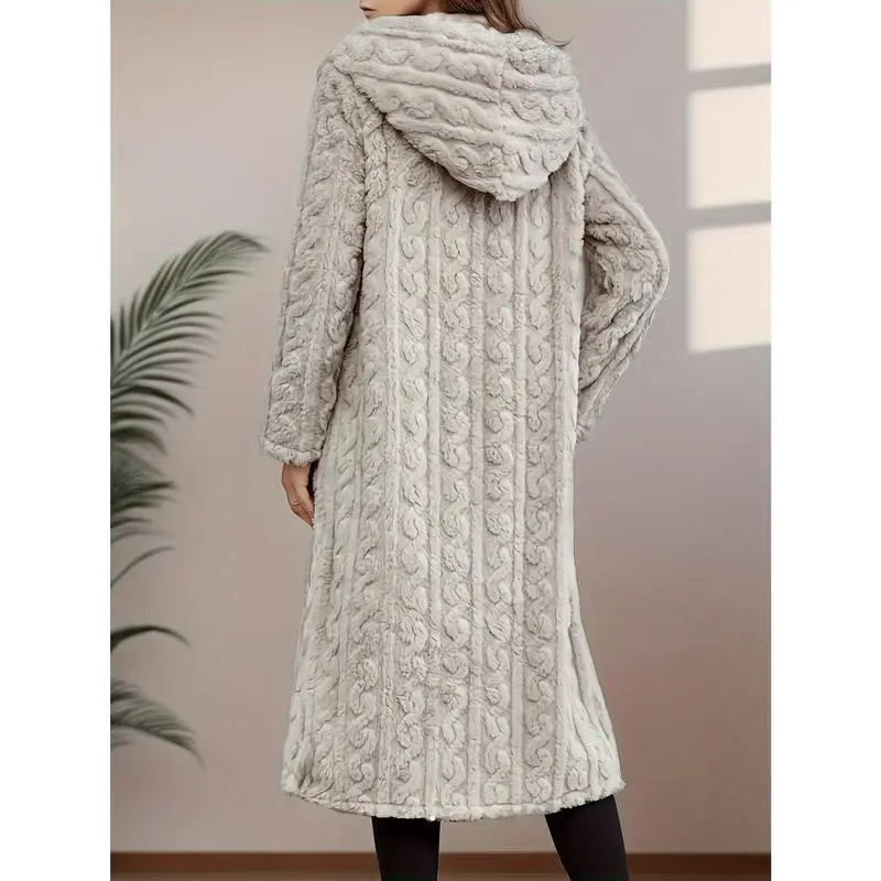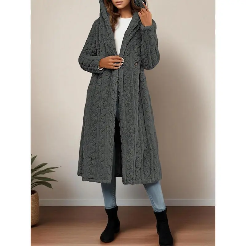 Plus Size Solid Color Plush Hooded Jacket, Warm and Comfortable Long Sleeve Cardigan, Suitable for Autumn and Winter, Women's Plus Size Clothing