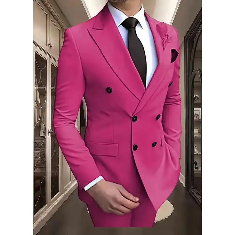 Men's New England-Style Slim-Fit 2-Piece Double-Breasted Suit (Formal Wear for Wedding, Prom & Party)