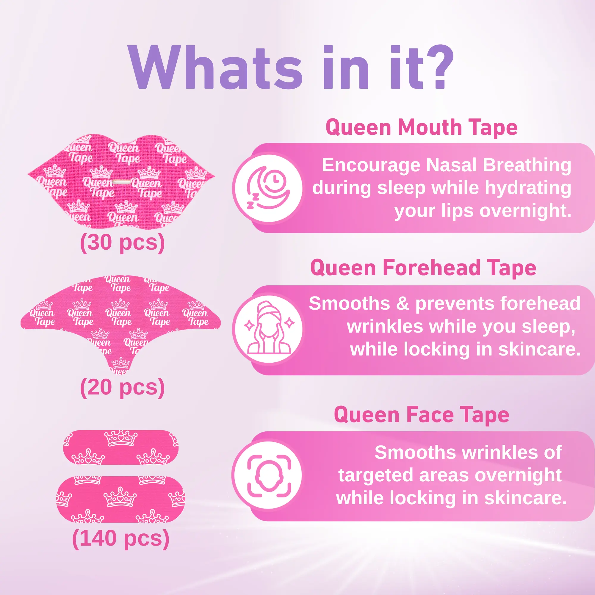[Queen Tape Official] Hydrating Mouth Tape, Face Tape, Forehead Tape bundles, Royal Plump Edition, Royal Tape, Sleep Like A Queen