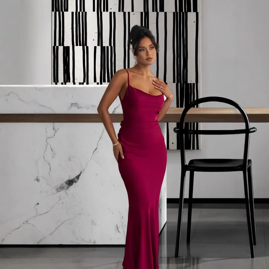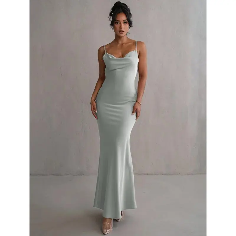 Cowl Neck Open Back Maxi Dress