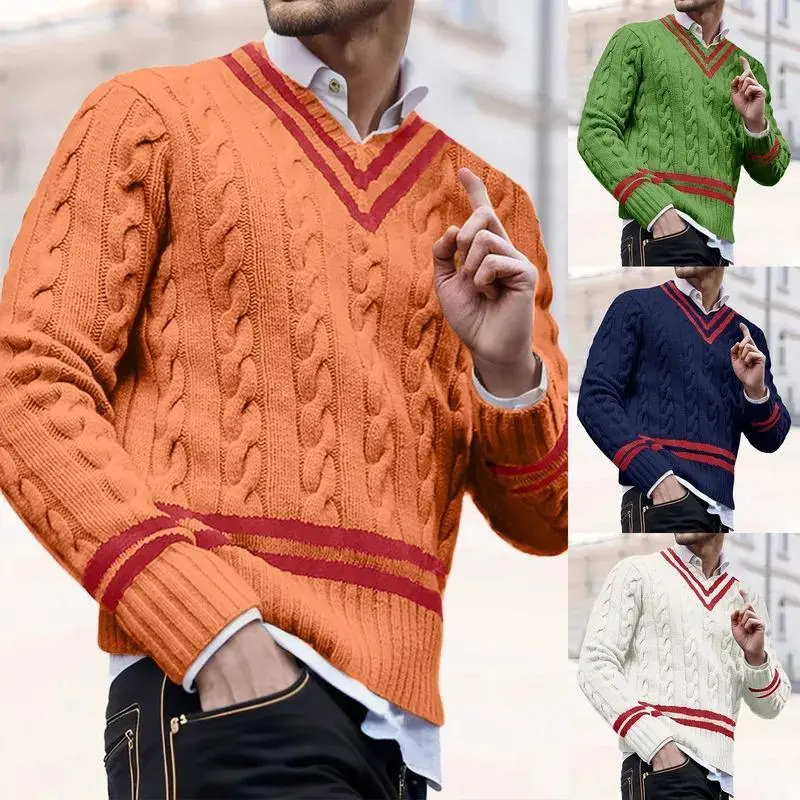 whether full opening:No Craft of Weaving:Non-Woven Sleeve style: puff sleeve Place Of Origin:Italy Sleeve length (cm):Full Closure Type:Single Breasted Mens Striped Color Matching Knitted Sweaters Are Fashionable And Loose In Autumn And Winter Season: All seasons Pattern Type: Stretch Fit: fit for size What you get: 1 PC Sweater M - 105cm/41.34'' - 46cm/18.11'' - 62cm/24.41'' - 69cm/27.17'' L - 110cm/43.31'' - 47cm/18.50'' - 63cm/24.80'' - 71cm/27.95'' XL - 115cm/45.28'' - 48cm/18.90'' - 64cm/25.20'' - 73cm/28.74'' XXL - 120cm/47.24'' - 49cm/19.29'' - 65cm/25.59'' - 75cm/29.53'' Size:M - Bust:105cm/41.34'' - Shoulder:46cm/18.11'' - Sleeve:62cm/24.41'' - Length:69cm/27.17'' Size:L - Bust:110cm/43.31'' - Shoulder:47cm/18.50'' - Sleeve:63cm/24.80'' - Length:71cm/27.95'' Size:XL - Bust:115cm/45.28'' - Shoulder:48cm/18.90'' - Sleeve:64cm/25.20'' - Length:73cm/28.74'' Size:XXL - Bust:120cm/47.24'' - Shoulder:49cm/19.29'' - Sleeve:65cm/25.59'' - Length:75cm/29.53''