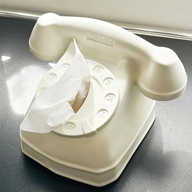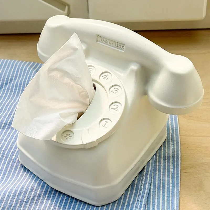 【Retro Appeal】: Showcasing a nostalgic telephone design, this tissue holder adds a unique touch to any room, standing out from ordinary tissue boxes. 【Durable Material】: Crafted from soft rubber, the tissue box is sturdy and designed to withstand daily use while maintaining its vintage charm. 【Creative Decor】: This piece serves not only as a functional tissue dispenser but also as a charming decorative item, enhancing your office or living room. 【Non-wooden Composition】: Featuring no wooden elements, this tissue box embodies a modern twist while ensuring compatibility with various decor styles. 【Versatile Utility】: Perfect for use in multiple areas such as the bathroom, kitchen, or office, adapting easily to different settings without losing its charm.