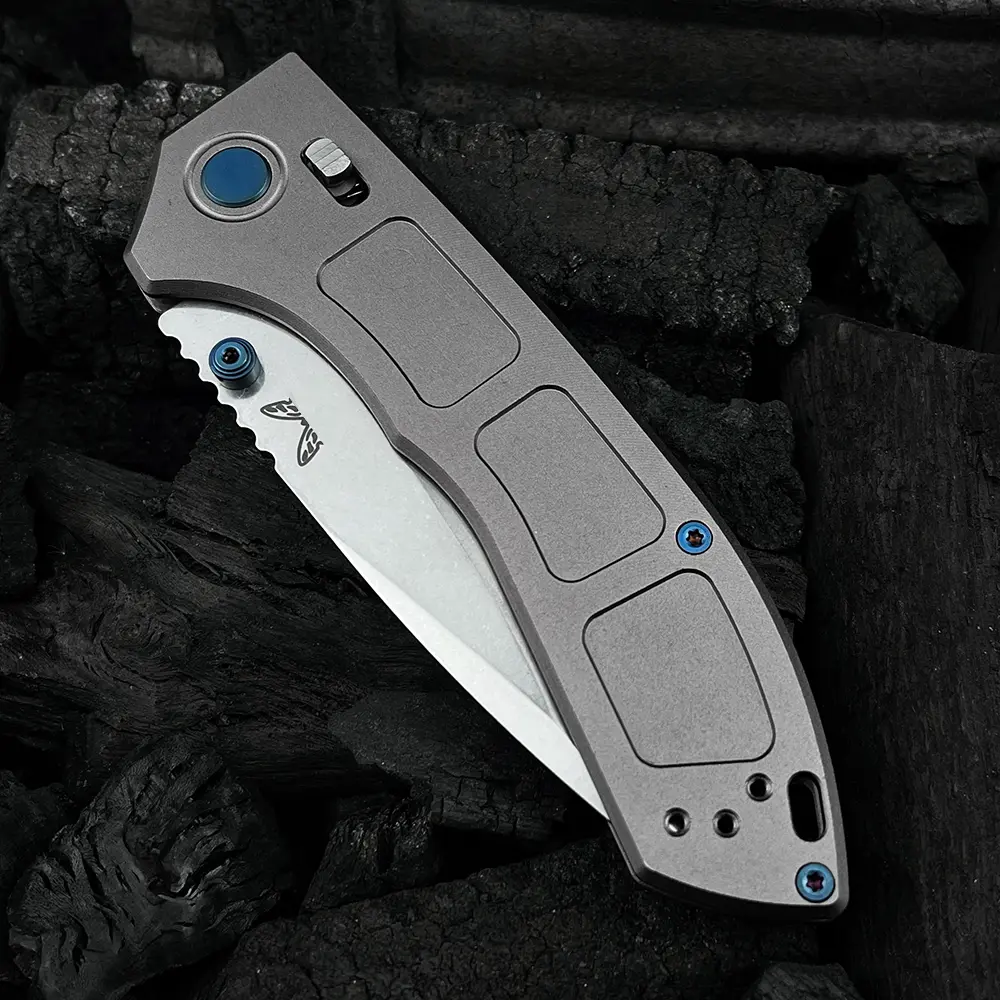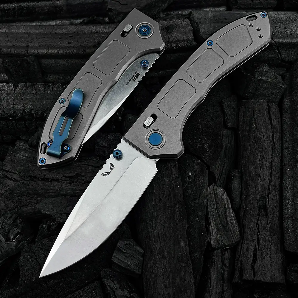 BM Narrows 748 Pocket Knife M390 Super Premium Stainless Steel Blade Knife 6Al-4V Titanium GRAY Handle folding knife Outdoor Hunting Survival Knife Hiking Knife self defense tactical knife Camping Fishing Tools Knife EDC Knife
