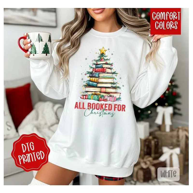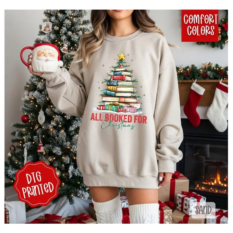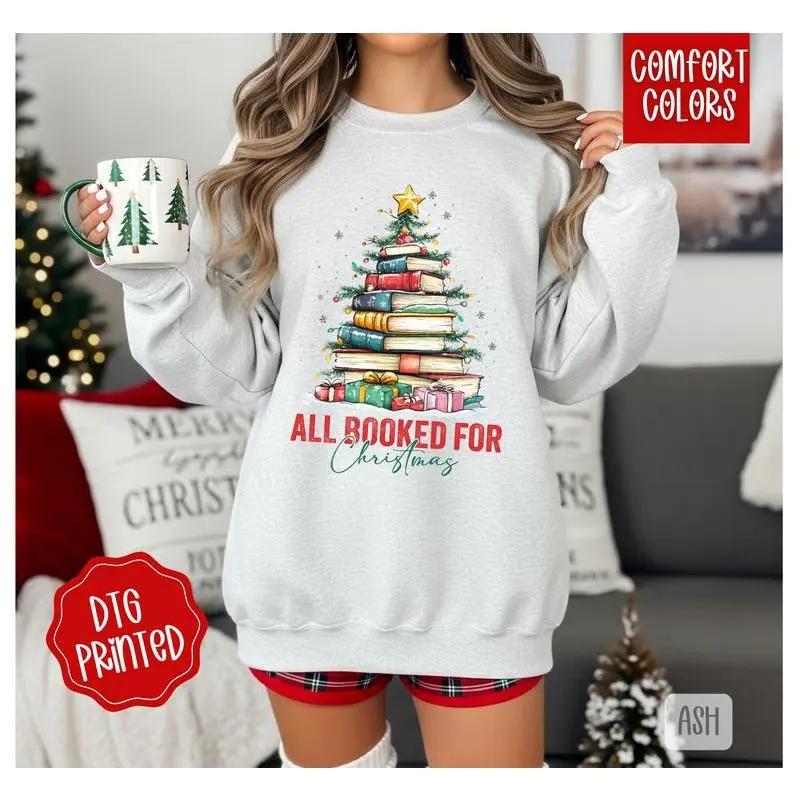 All Booked for Christmas Sweatshirt, Trendy Women's Holiday Sweater