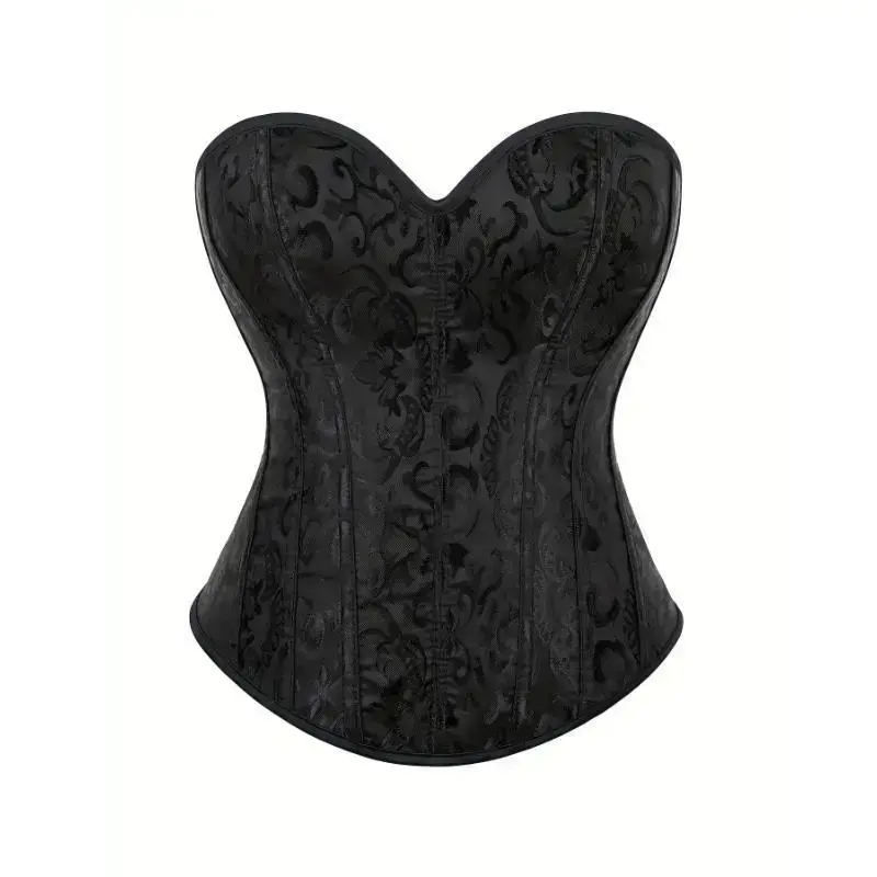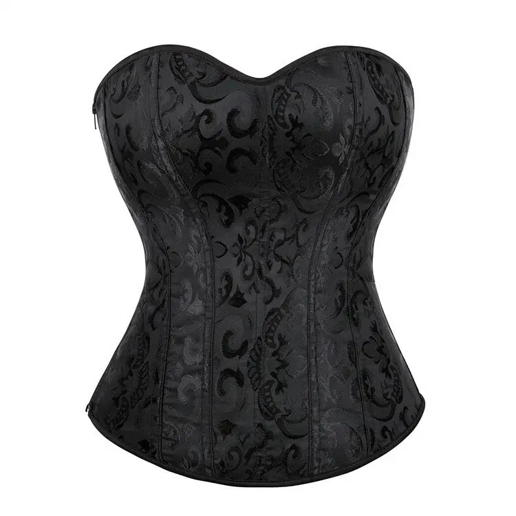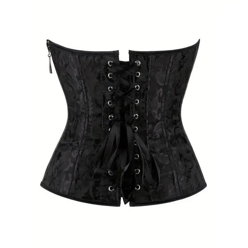 Women'S Classic Jacquard Strapless Corset with Side Zipper - Black, Lace-Up Body Shaper for Adults, Perfect for Parties and Formal Events, Formal Attire|Elegant Strapless Corset|Zippered Corset