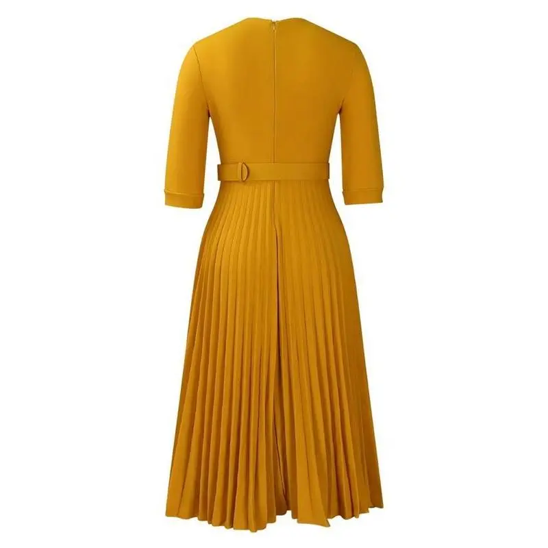 [Sophisticated Appeal]: Crafted with a unique blazer-style collar, this dress conveys a refined sophistication that distinguishes it from typical dresses. [High-Quality Fabric]: Made with a thick knit fabric, it ensures warmth during fall and winter, making it suitable for colder weather. [Tailored Fit]: This slim-fitting silhouette flatters various body types, emphasizing a sleek outline while providing a tailored appearance. [Classic Color]: Presented in a plain pattern, this dress offers a timeless look, making it a staple for both formal and semi-formal occasions. [Seasonal Versatility]: Specifically designed for fall and winter wear, this dress provides warmth without compromising on a polished look.