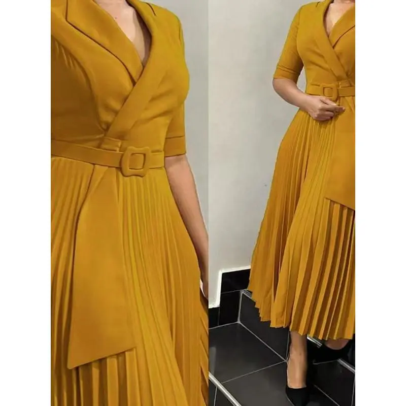 Women's Fashion Best-Selling Blazer Collar Elegant Dress, Stylish Long Sleeve A-Line Dress, Perfect for Office & Party Wear chiffon material glimmer interview gold flower Ruched Glitter mist red green pink sparkly yellow plain silk rose lace white
