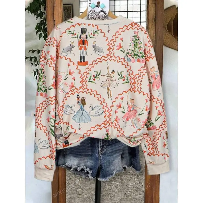 2025 Christmas Nutcracker Random Print Women's Oversized Spring And Autumn Fashion Casual Christmas Long Sleeve Sweatshirt