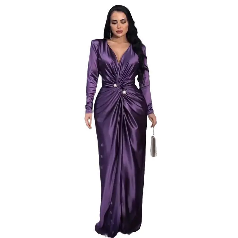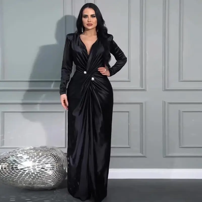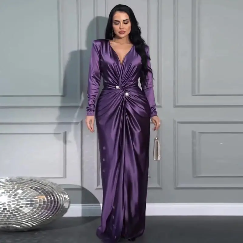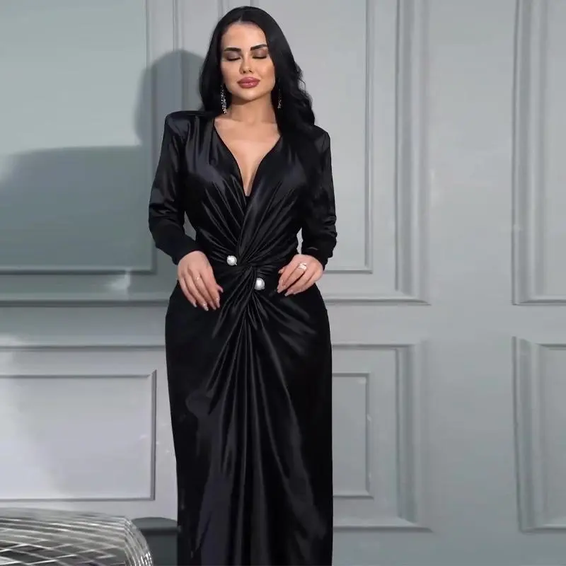 Autumn Mature Style Fashion Collar Ruched Waist Evening Dress Women's Semi-Formal Wedding Guest Dress