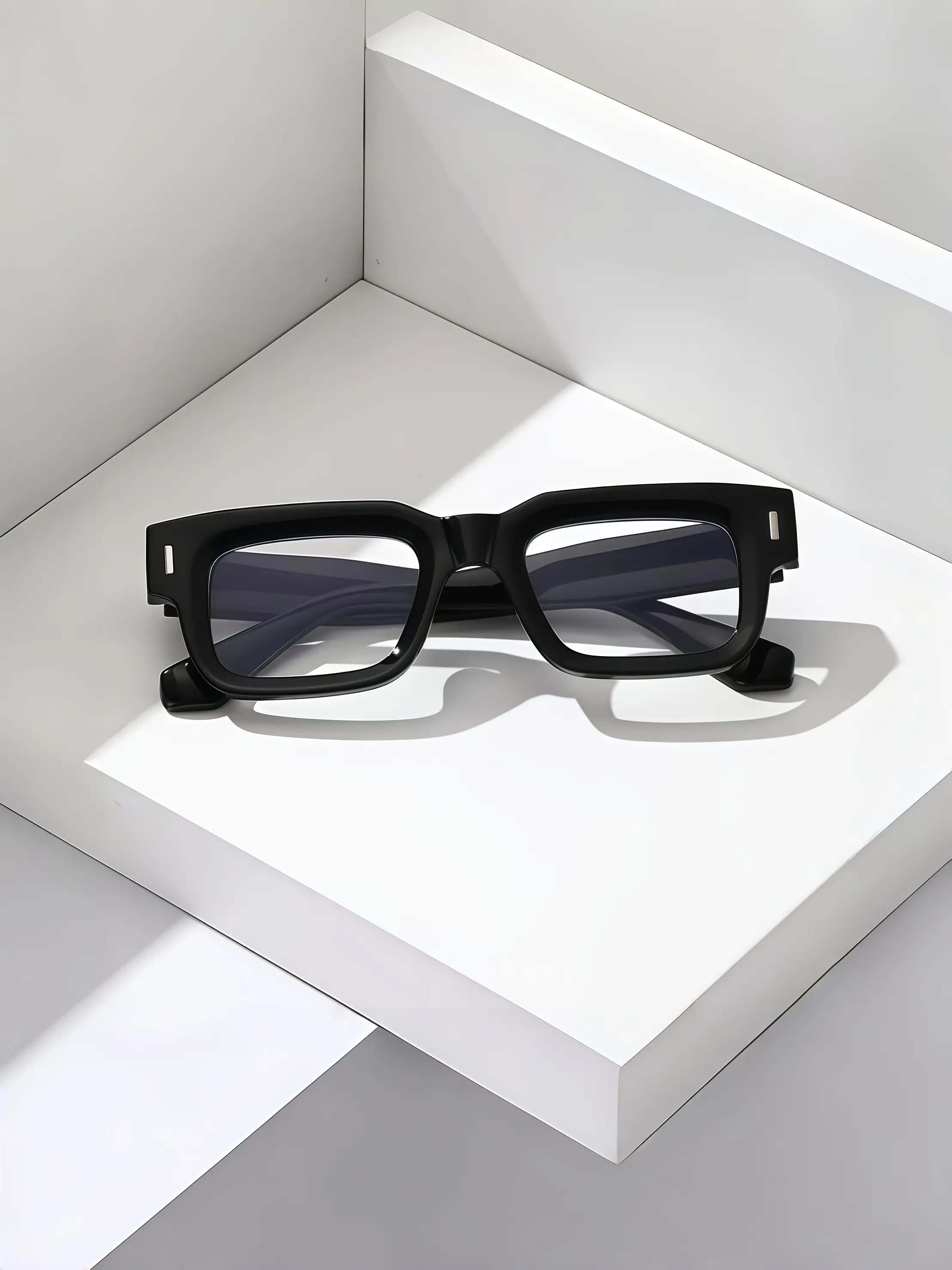 European and American Square Sunglasses, Glossy Black Frame Clear Lenses, Retro Trendy Shades, Versatile Fashion Accessory for Street Style, Shopping, Dating, Travel, Beach Vacation and Daily Outfits, Valentine’s Day Gift