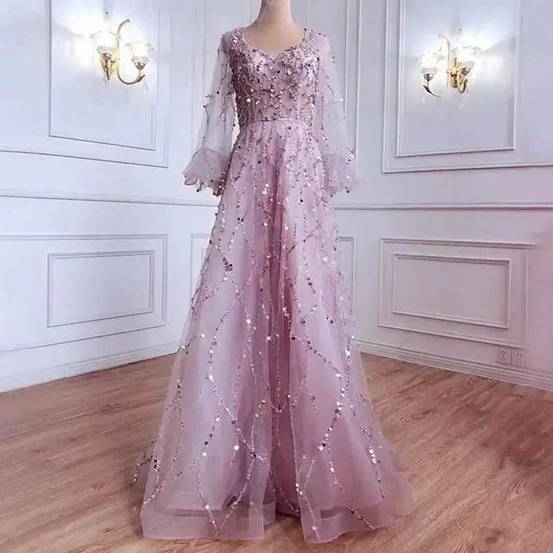 2025 New Women's Gold Luxury Evening Dress Sexy Female Style Queen Dress Women Elegant Vestidos Formal Womenswear Workwear Long Sleeve