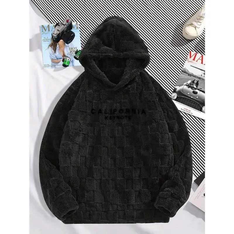 CALIFORNIA KEYNOTE Unisex Loose Fashions Felt Fashions Hoodie Ideal For Gifts Embroidered LoosePlaid Fleece Hoodie Men's,Men's Winter Hoodie For Winter Daily Outing Plush