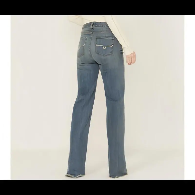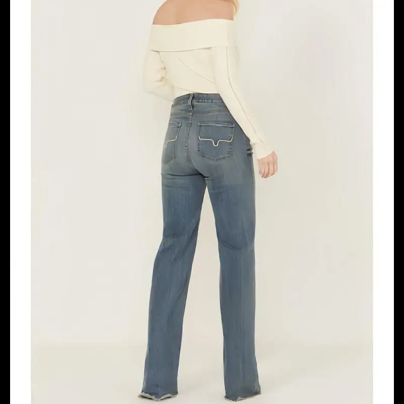 Women's Medium Wash High Rise Wide Leg Jeans Button Cotton Womenswear Lightweight