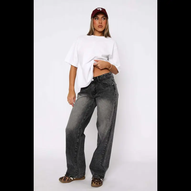 Magic ONESO Mid-low Rise Baggy Jeans Stretchy Wide Leg for Women Distressed Pants Womenswear Bottom 8001 Lady Basic Minimalist Comfortable Denim Tummy Control Curve Hugging Plus Size Regular Size BBL Spring Fashion Daily Outfits