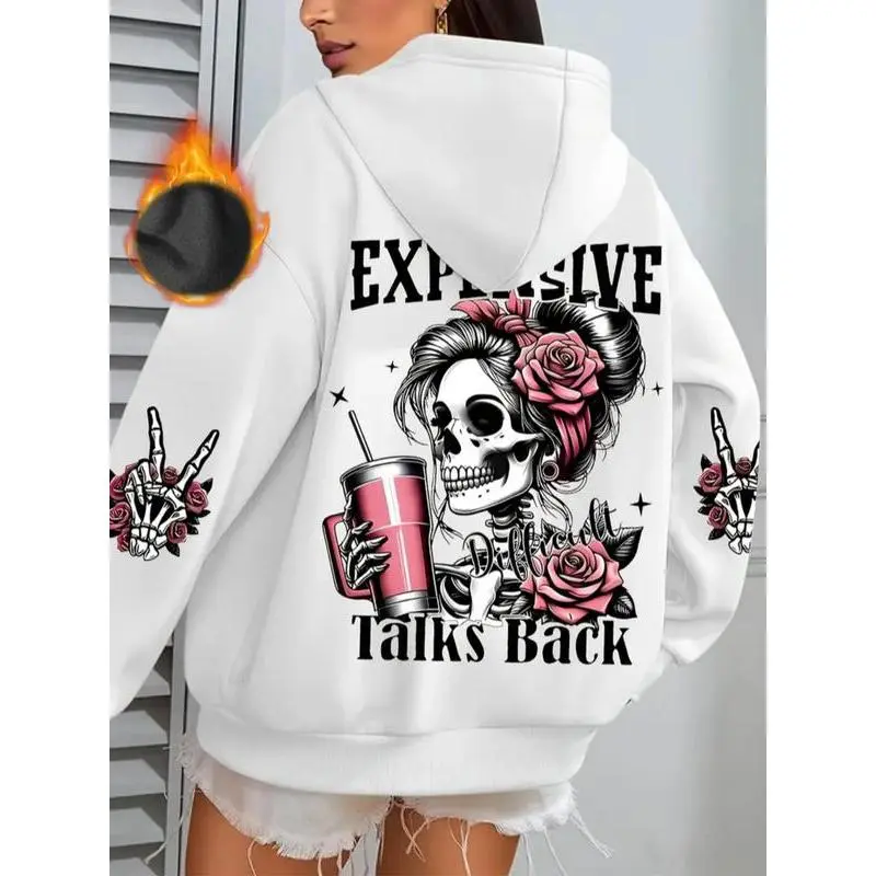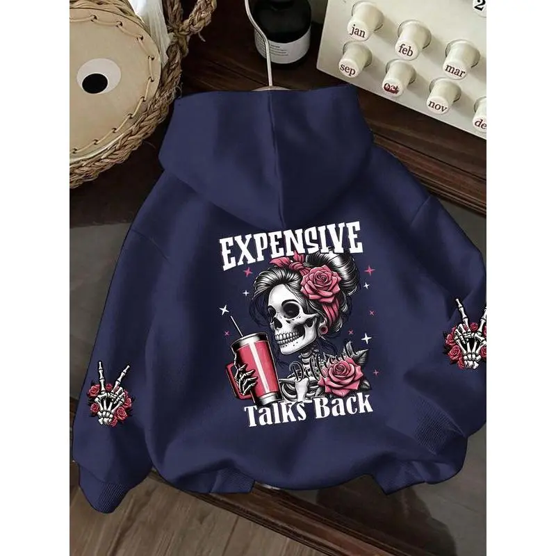 【Unique Print】: Features a striking Halloween-themed red and pink skull graphic, adding a distinct look to seasonal wear. 【Soft Fabric】: Crafted from a comfortable and soft material, ensuring a pleasant feel against the skin throughout wear. 【Roomy Fit】: Designed with a loose fit that allows for unrestricted movement, making it suitable for various activities. 【Practical Pockets】: Equipped with a squirrel-style pocket, offering convenient storage for essentials while enhancing functionality. 【Seasonal Use】: Tailored for fall and winter wear, making it a fitting choice for colder weather and seasonal celebrations.