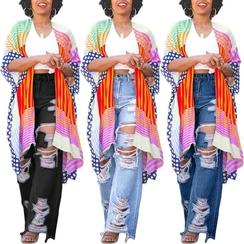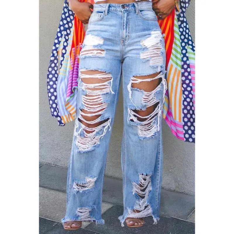 Women's High Waisted Skinny Destroyed Ripped Hole Denim Pants Long Stretch Pencil Jeans Can be used with raincoat