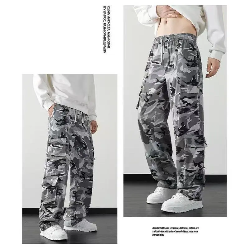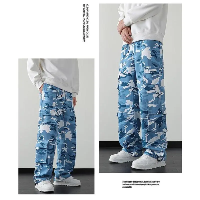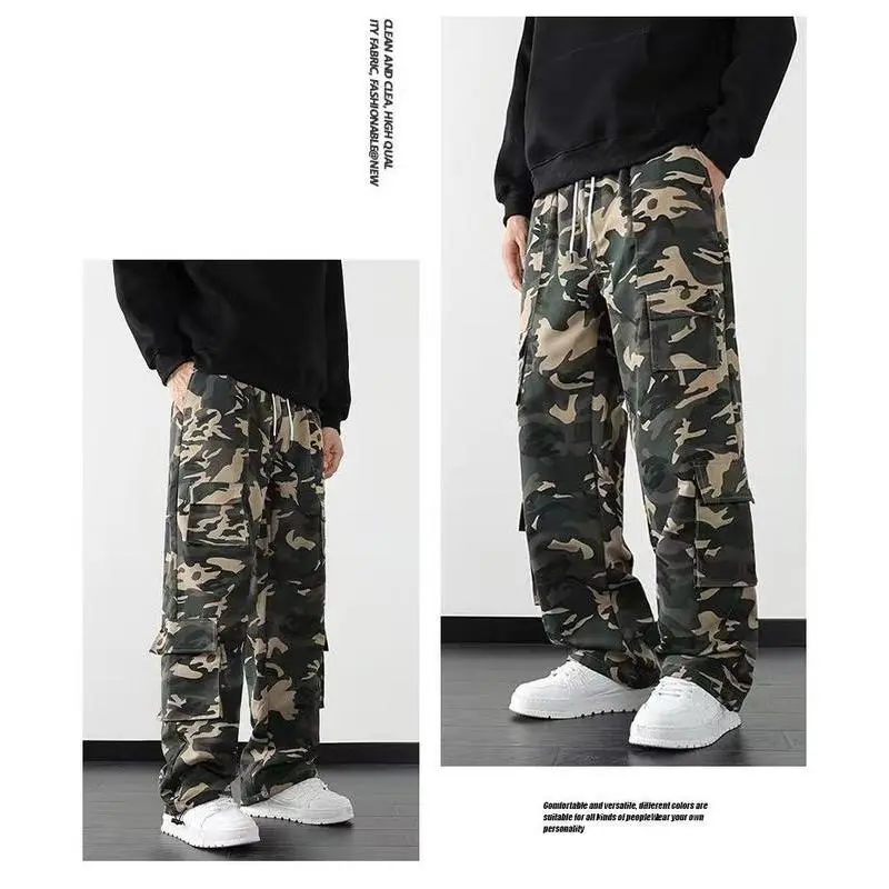 Fashion men's wear�� [Fashionable Camouflage Pants] Fujilove Men's Camouflage Print Work Pants | Fashionable Loose Pants with Flip Pocket for Hiking and Camping, Outdoor Streetwear Hiphop Style