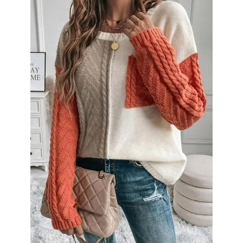 Women's Colorblock Drop Shoulder Sweater, Casual Long Sleeve Round Neck Pullover Jumper for Fall & Winter, Fashion Ladies' Knitwear for Daily Wear(gift) Womenswear Basic