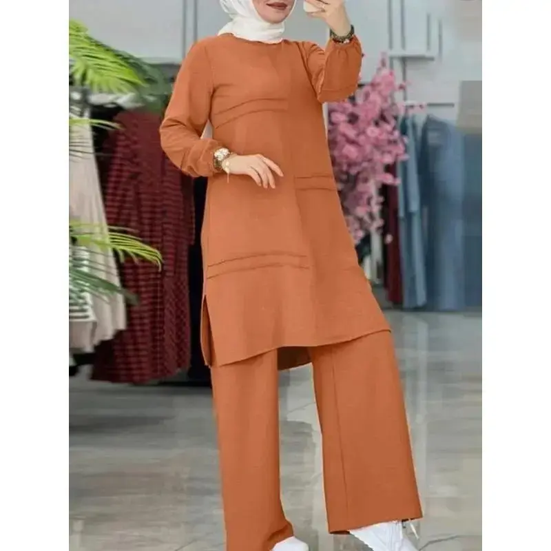 Two Piece Sets Shirt Dress &Pants Women Muslim Suits Shirt Blouse Musulman Ensembles Moroccan Kaftan Islamic Dress Sets