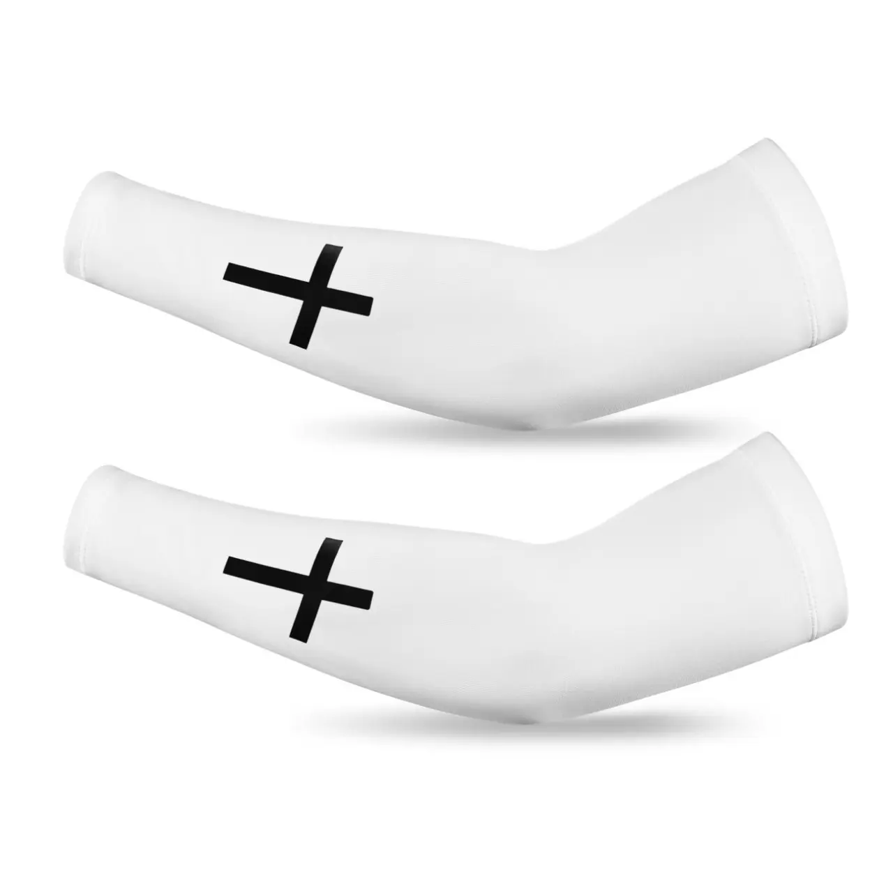 Cross Arm Sleeves 2 Pairs Polyester Religious Compression Cooling Arm Sleeves for Men Women Football Basketball Baseball Running Cycling Outdoor Activities Sleeve with Piping