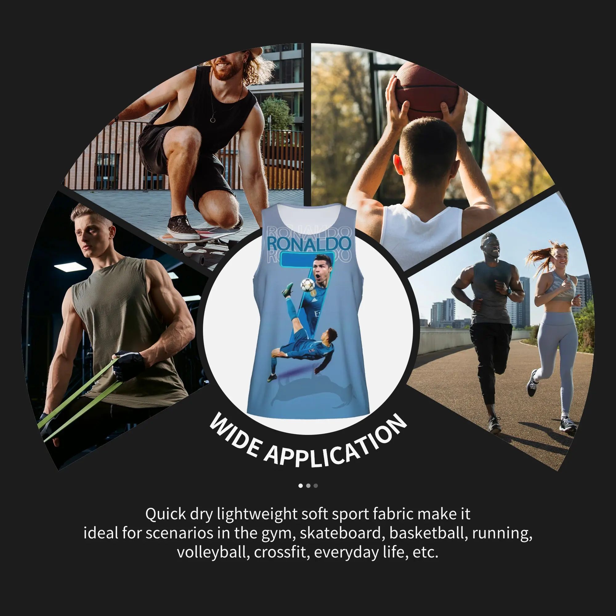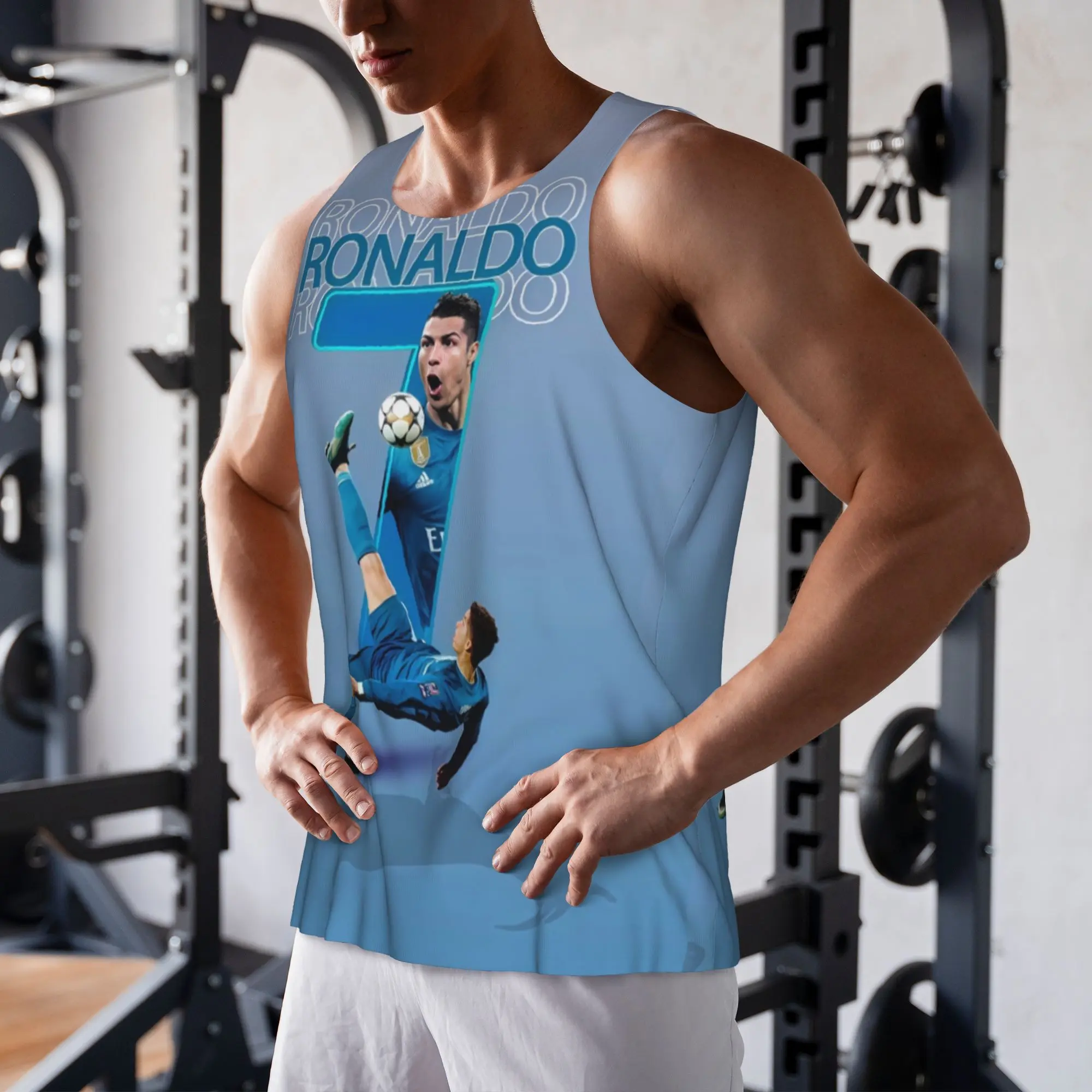 Cristiano Ronaldo's legendary bicycle kick printed vest, a must-have for football fans, comfortable for both sports and everyday wear.