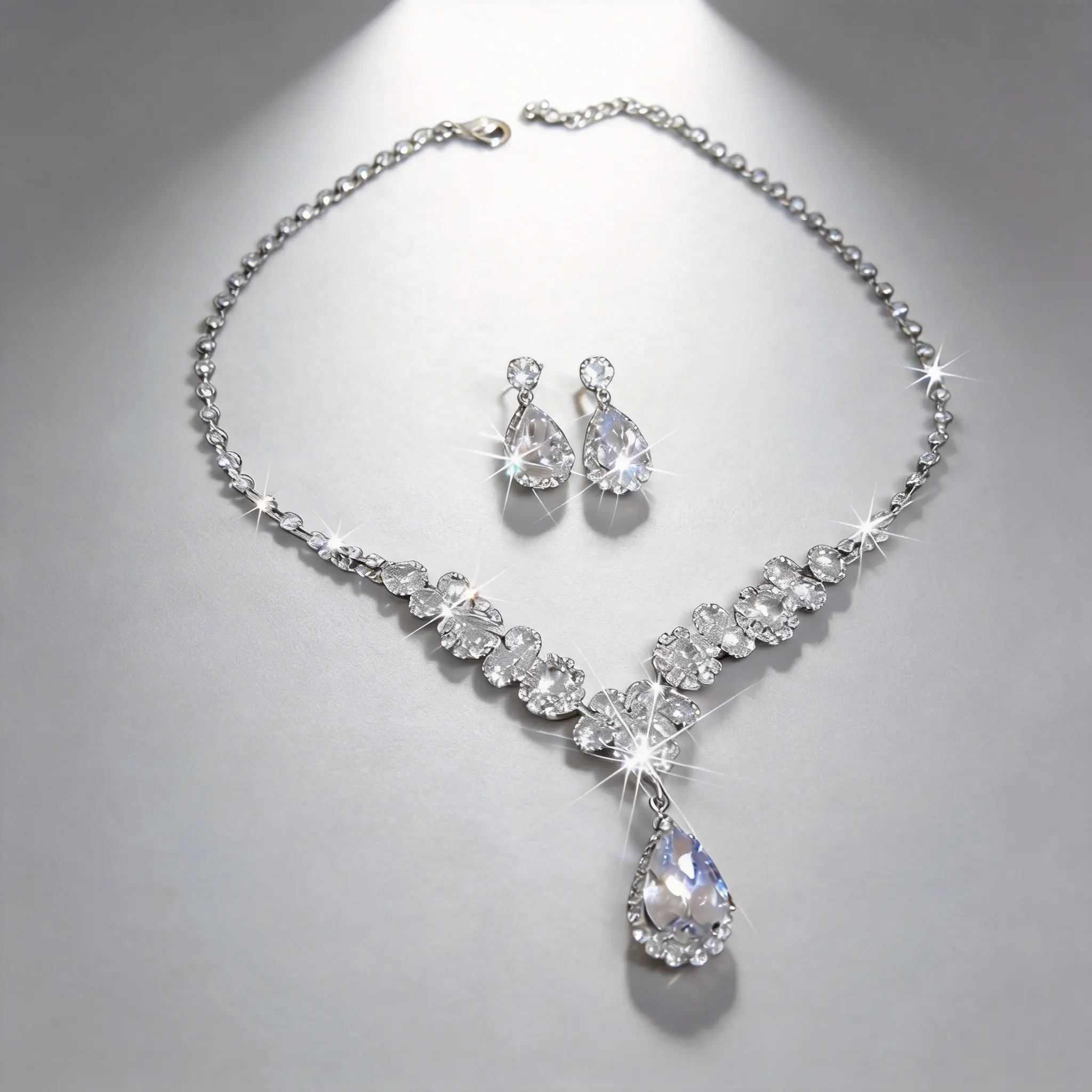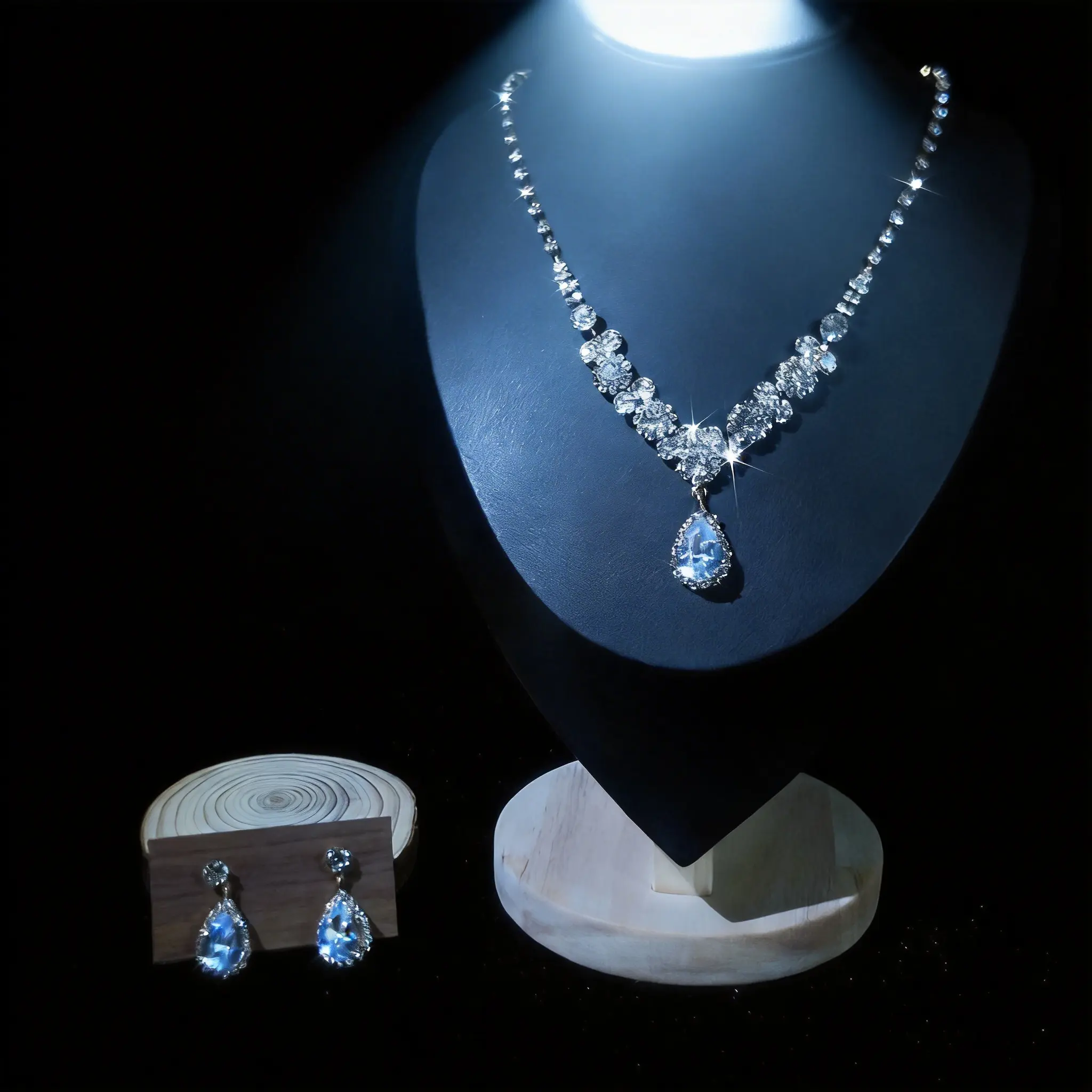 Vintage Hypoallergenic Aurora Necklace Set, 2-Piece Design, a Warm Gift to Remind Her of Your Love Dainty Hypoallergenic Aurora Jewelry Set, CZ Embellished, Perfect for Wedding/Gala, a Thoughtful Gift