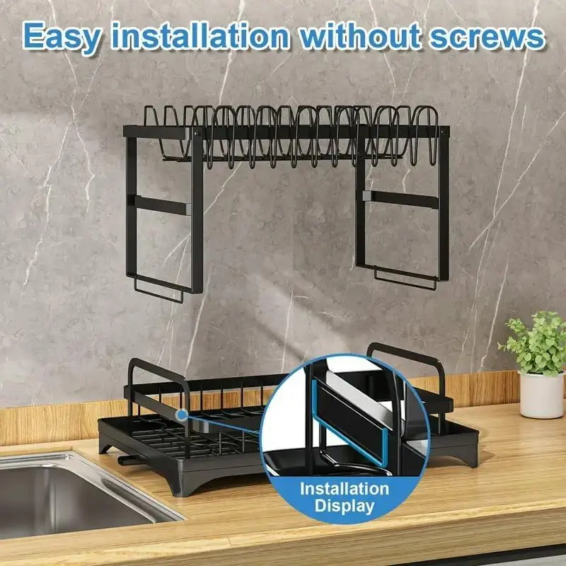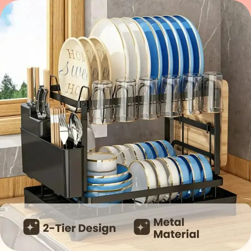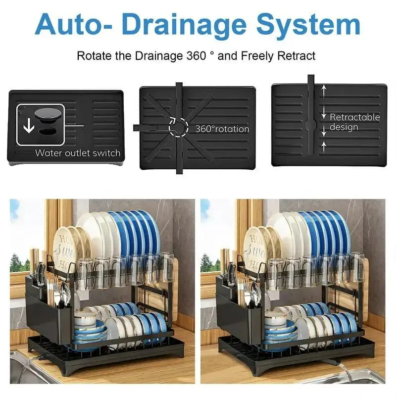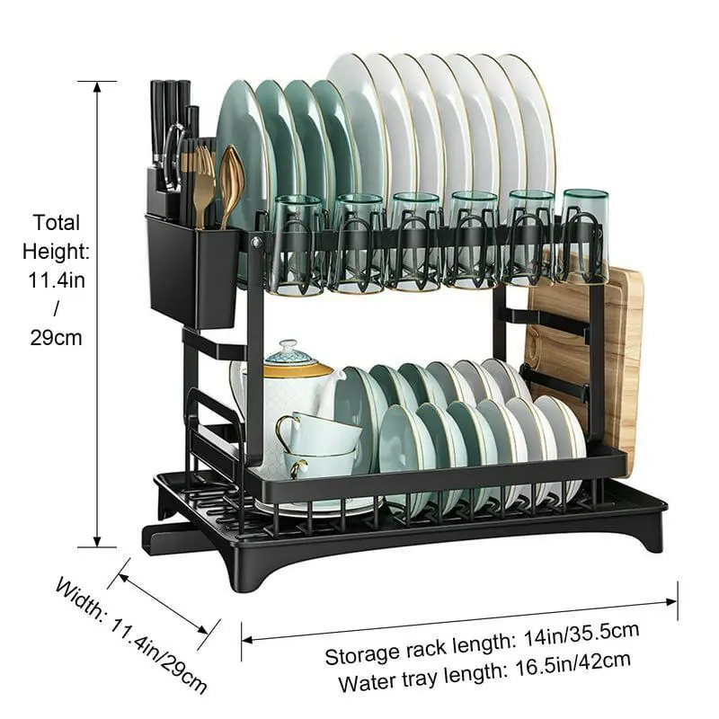 Black double layer dish rack (fully equi