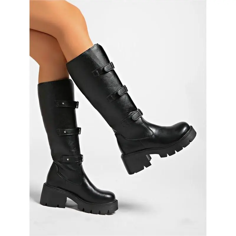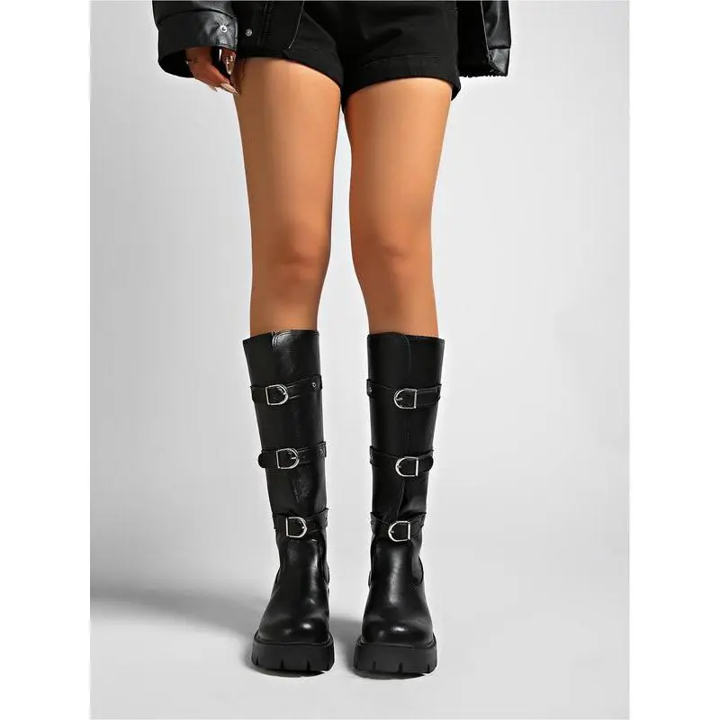 ??Waterproof Upper??: Equipped with a waterproof shoe surface, ensuring durability and protection against rain and moisture. ??Thick Sole??: Featuring a robust thick sole for enhanced traction, providing stability and grip on various terrains. ??Ankle Height??: Boot height is designed to sit above the ankle, offering support while allowing flexibility in movement. ??Metal Buckle Detail??: Showcases a distinctive metal buckle decoration, adding a unique flair while ensuring secure fastening. ??Lightweight Material??: Constructed with lightweight PU leather, ensuring ease of movement without compromising durability.