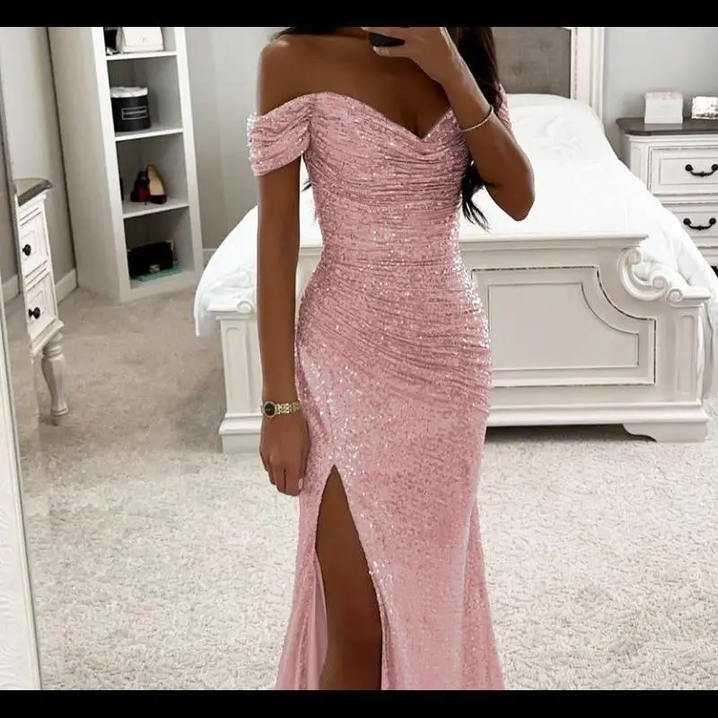 2025 New Party Sequins off-the-Shoulder Slit Dress