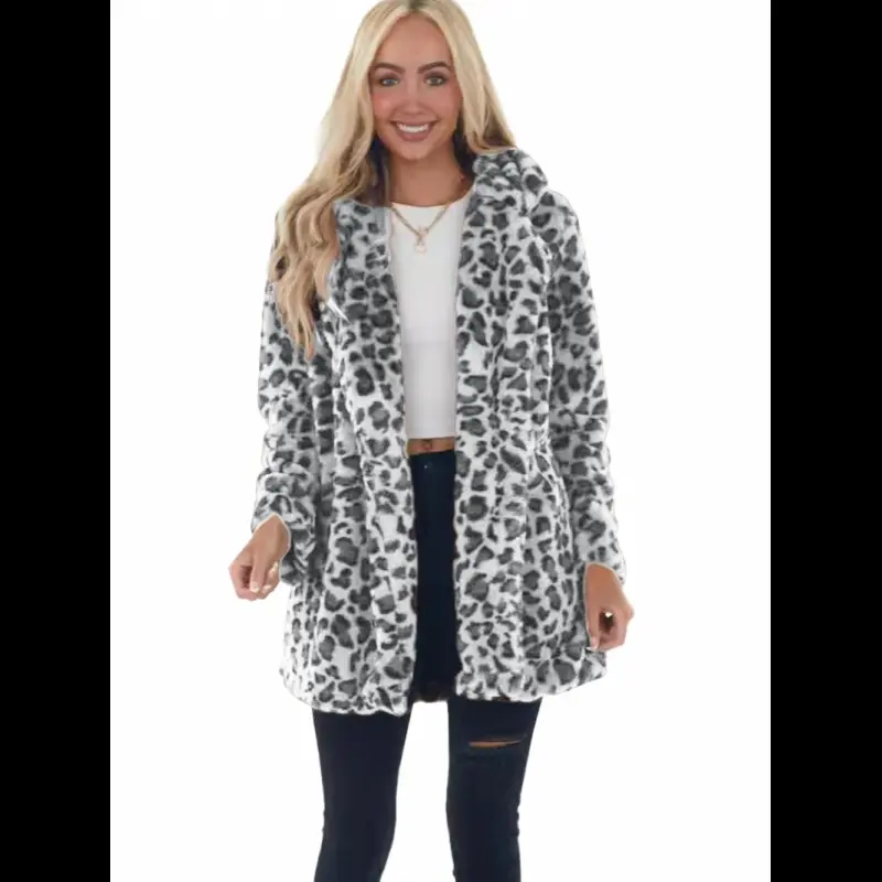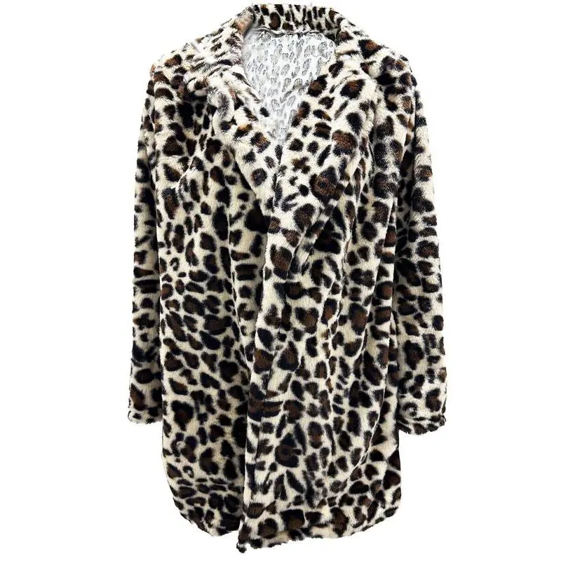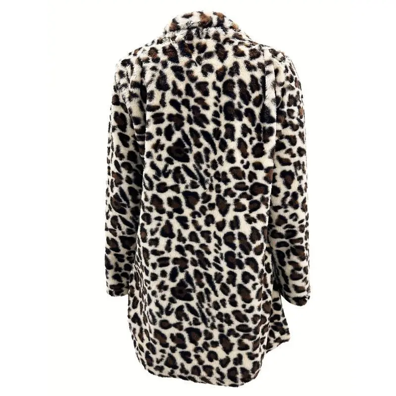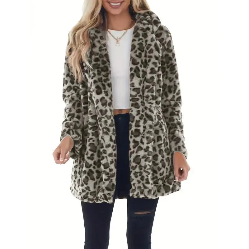 Women's Sexy Cozy Leopard Print Faux Fur Jacket with Pockets, Oversized Winter Coat, Casual & Formal Wear for Parties, Everyday Outfits, Warm Outerwear Womenswear Coffee Khaki S-XL