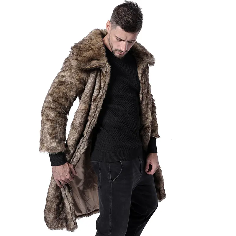 🎨 Elegant 2025 Autumn Winter Fur Coat This men's mid-length faux fur coat is perfect for chilly days. The coat features a luxurious faux fur design, offering warmth without the bulk. Ideal for autumn and winter, it provides a stylish layer of warmth. The mid-length cut ensures comfort and elegance. 🌟 📌 Key Features 📸 Image Highlight The image showcases the coat's luxurious faux fur texture and mid-length design. It is worn over a black outfit, highlighting its versatility. The coat is a must-have for men looking for warmth and style. 📸