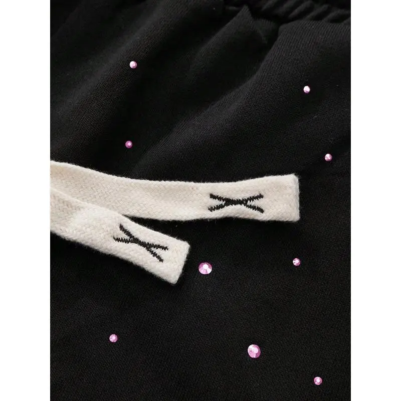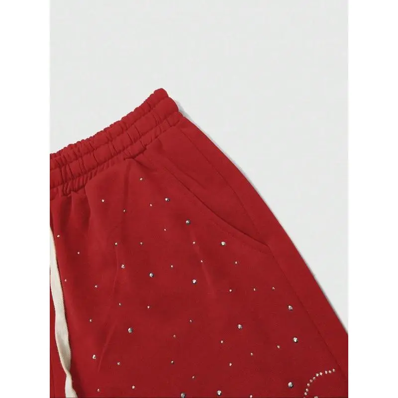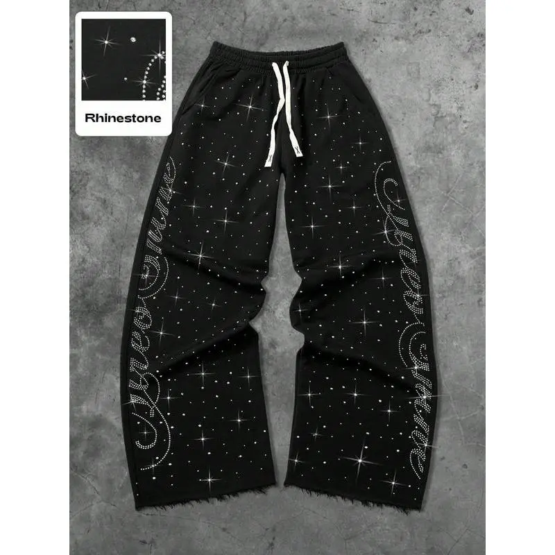 Men's Street Style Rhinestone Straight Leg Sweatpants, Loose Fit Long Pants Design, Comfortable Fashion Joggers for All Seasons