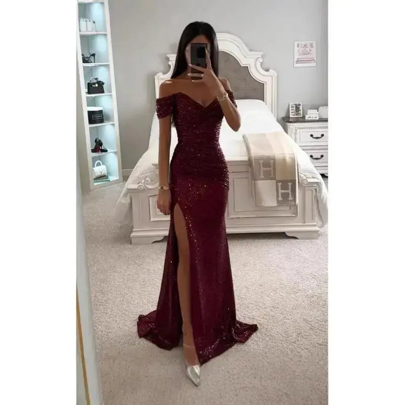 Sexy Side Slit Ballgown Shiny Sequins Women's Dress Independent Station Polyester Borderless Flashing Lightweight Fashion Formal Womenswear