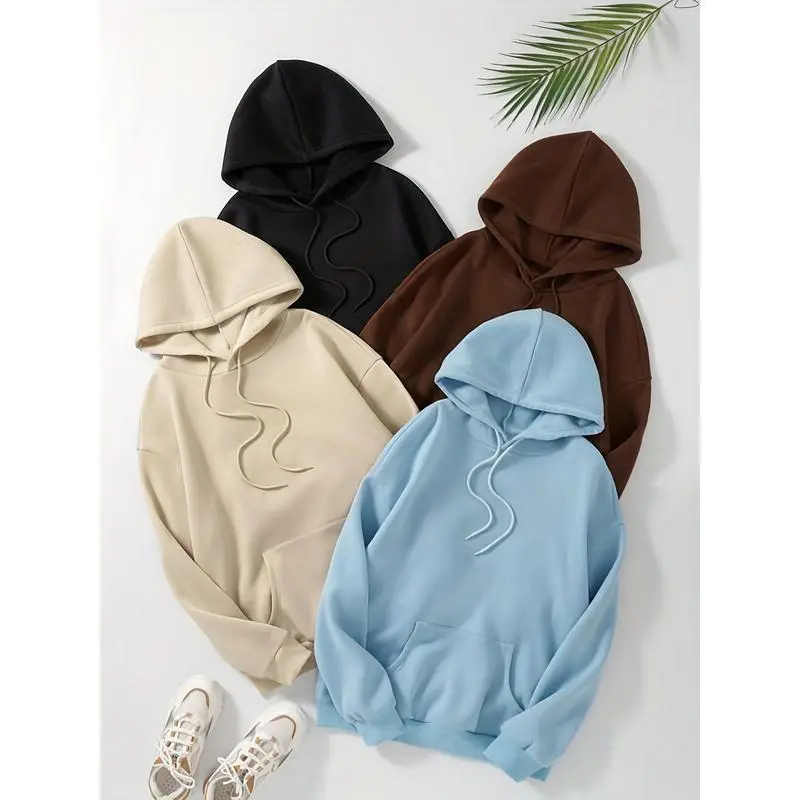 4 Packs Vibrant Solid Color Hoodies - Fashion Hoodies for Women with Drawstring, Casual Hooded Sweatshirt Design, Perfect for Fall and Spring Seasons, Soft and Cozy Women's Clothing